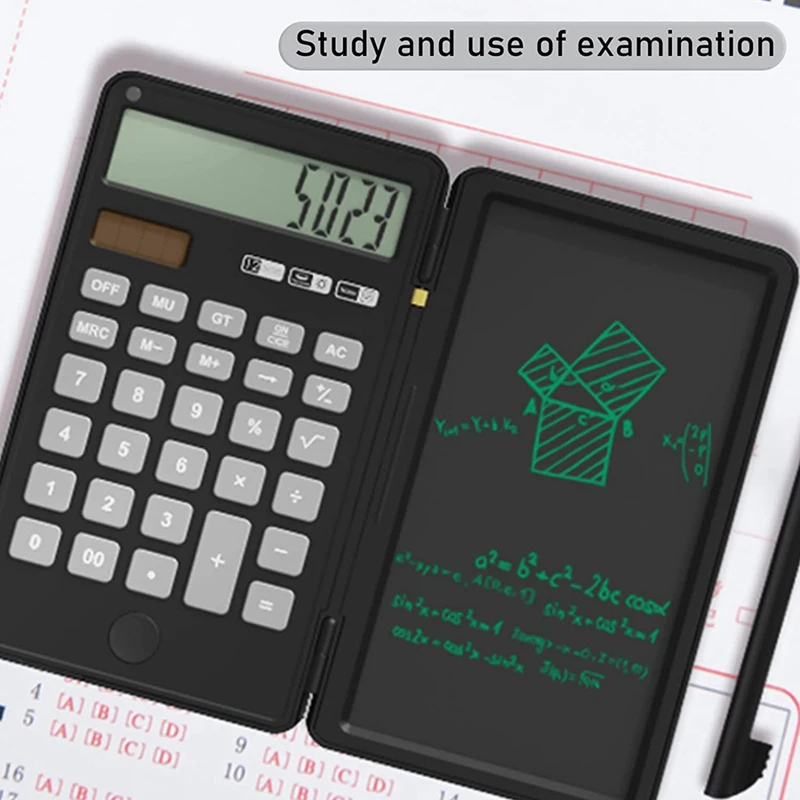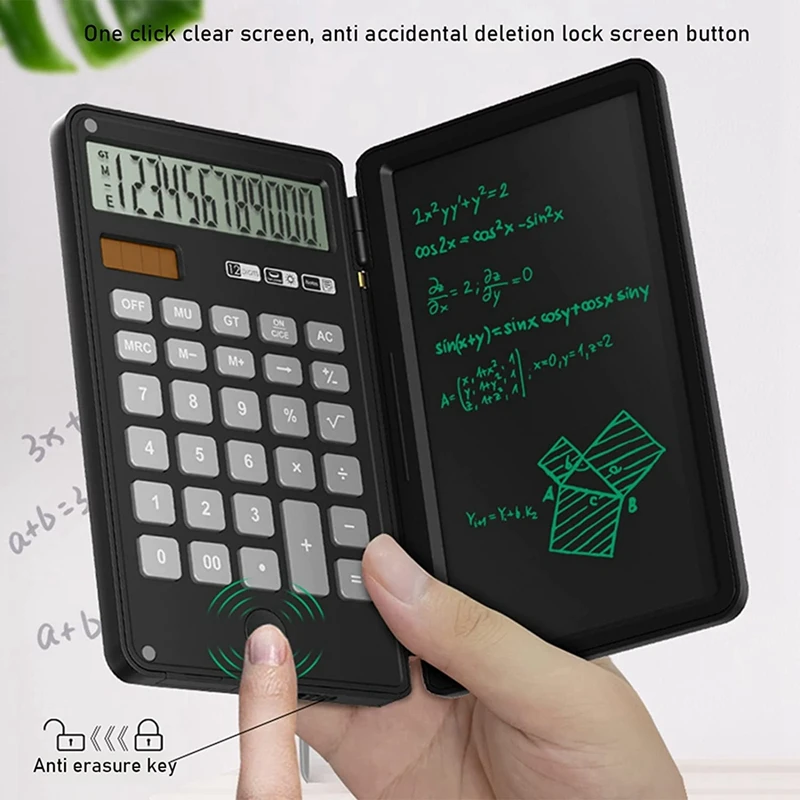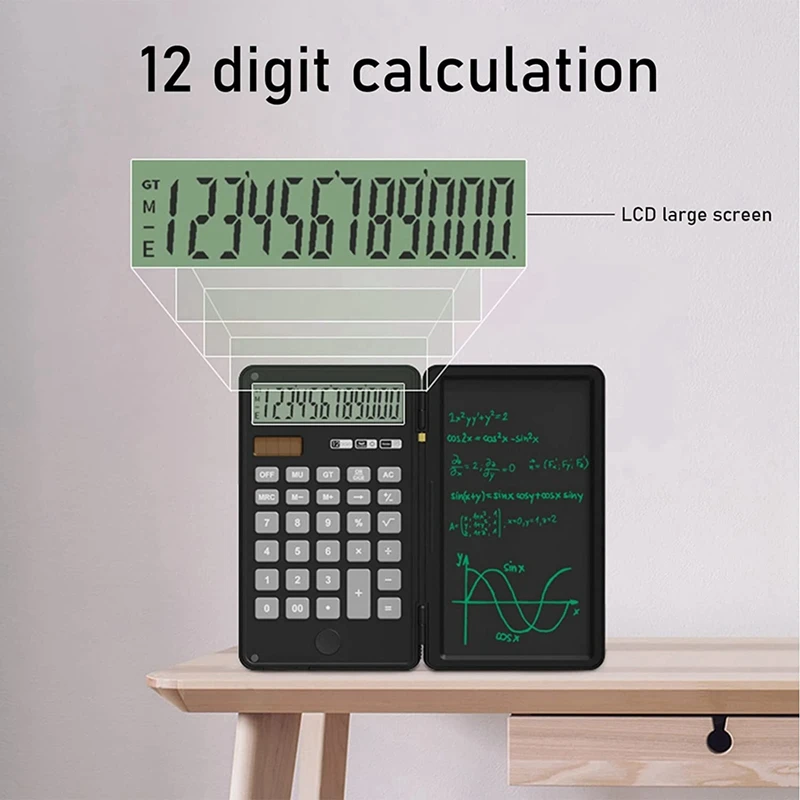 Calculadora plegable con Bloc de notas, Calculadora científica LCD de 12 dígitos, calculadora de escritorio portátil para estudiantes y niños