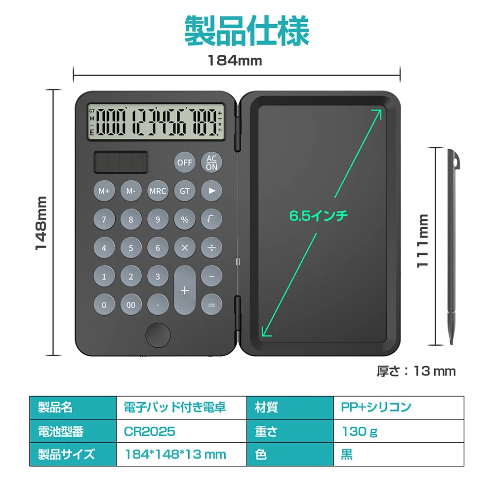 [Desk Calculators with Writing tablet] - This calculator with notepad combines a 6.5-inch electronic board and a 12-digit calculator, which enables you to take notes while calculating.