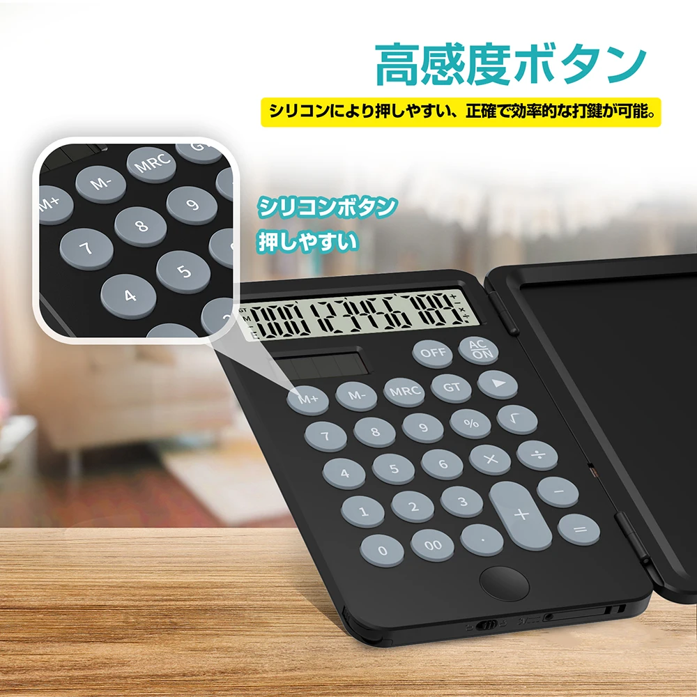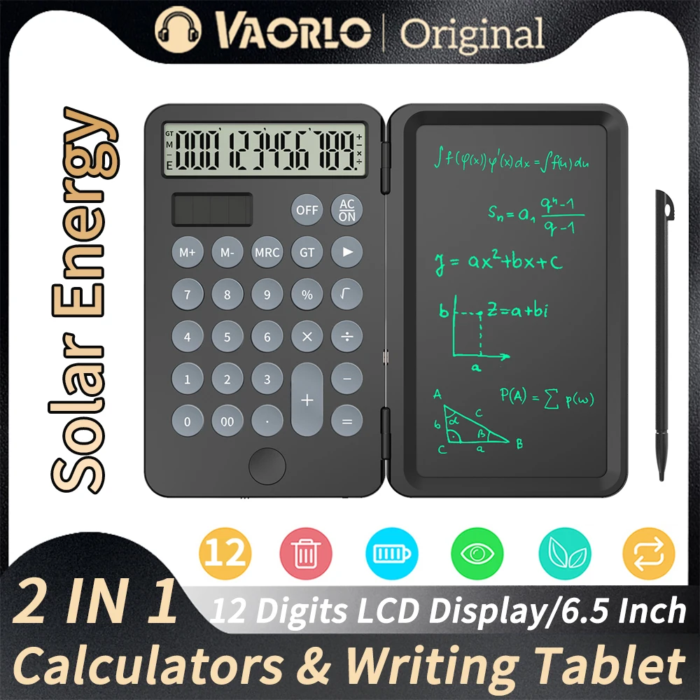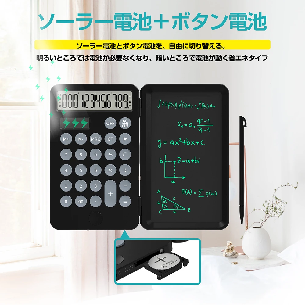 Comprar Calculadora Solar plegable 2 en 1, tableta de escritura de 6,5 pulgadas, 12 dígitos, Bloc de notas LCD, tablero de dibujo para estudiantes de escuela, oficina y negocios