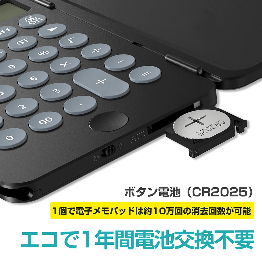 ●Handy LCD writing tablet with calculator attached, foldable but undetachable.