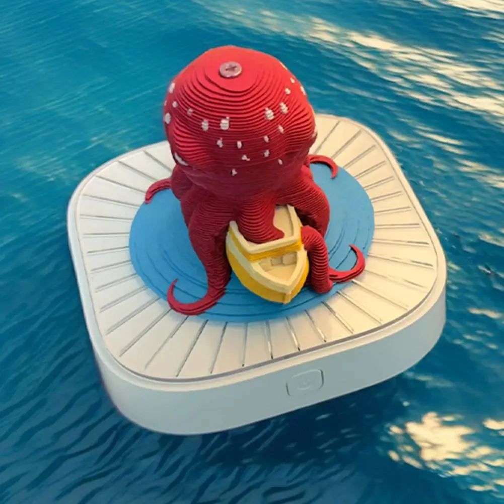 Combinación de colores llamativa: El pulpo púrpura contrasta fuertemente con la plataforma circular azul, haciendo que todo el modelo sea más llamativo visualmente. En particular, el diseño de rayas negras y rojas de los ojos del pulpo no solo resalta la expresión del pulpo, sino que también aumenta el impacto visual general.