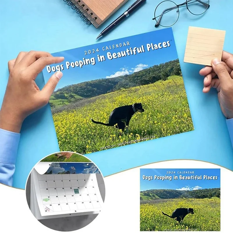 Comprar Calendario de broma de perro Pooping In Beautiful Place 2024, arte de pared divertido, regalo de Humor de mordaza, calendario de regalo para Navidad, 25x19cm