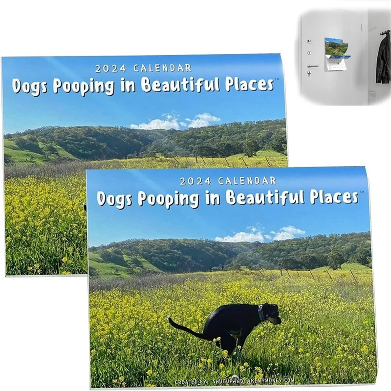 Calendario de caca de perro en un hermoso lugar 2024, divertido Calendario de broma de regalo de humor de mordaza de arte de pared, calendario de regalo para Navidad 25X19cm