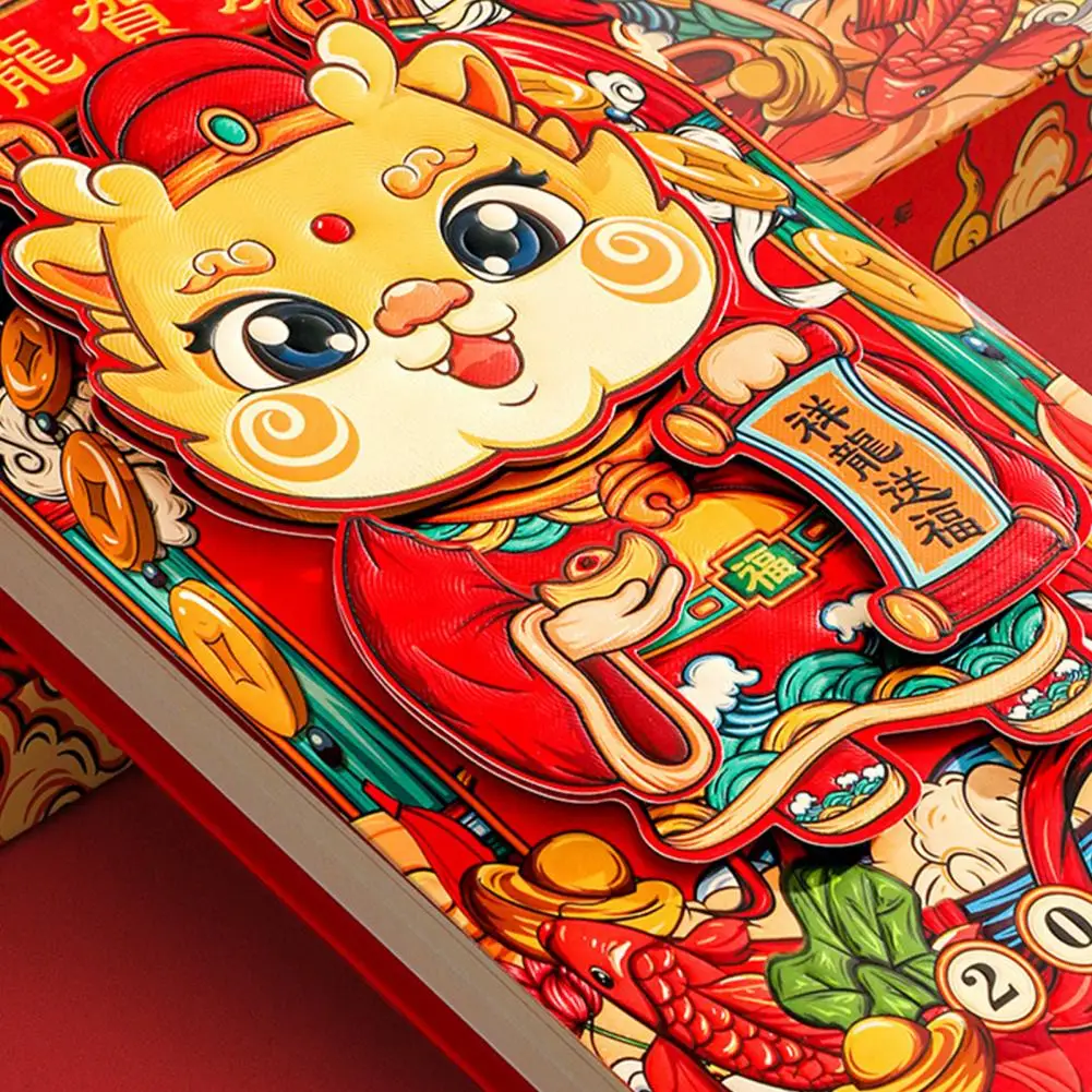 Adornado con elementos festivos en la espalda y encuadernación de animales auspiciosos de metal para un toque elegante y hermoso.
