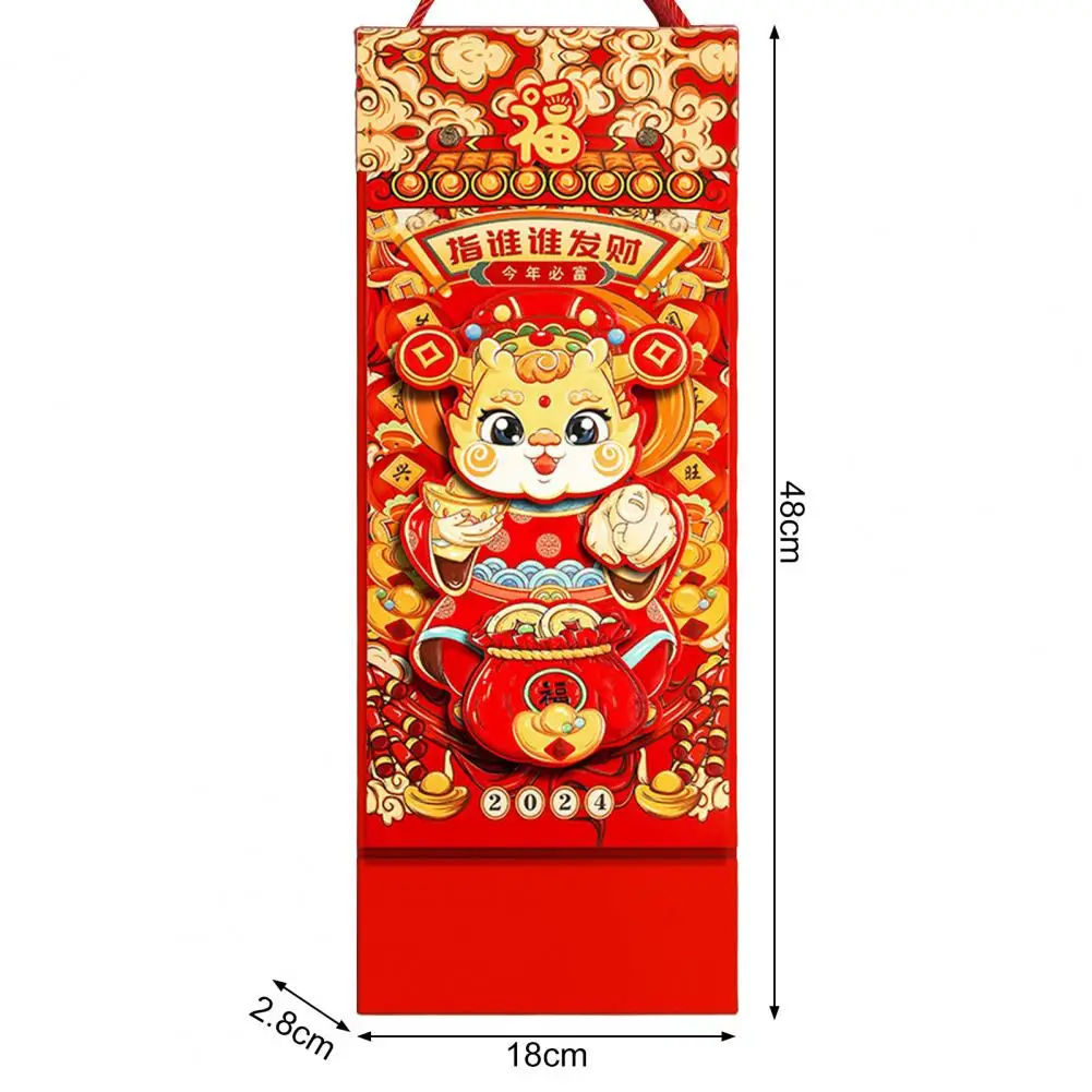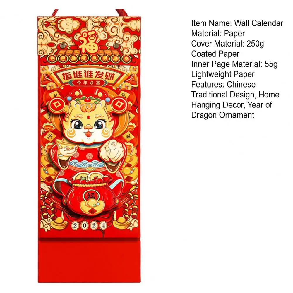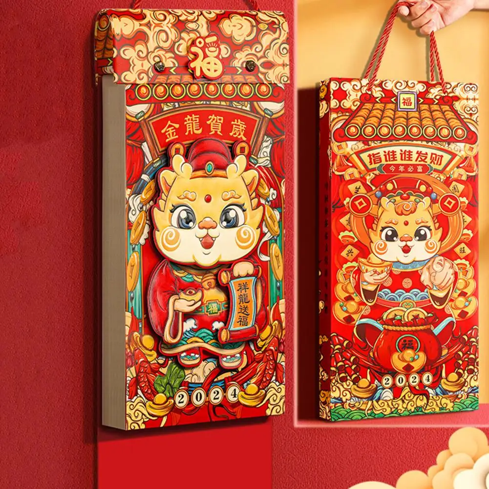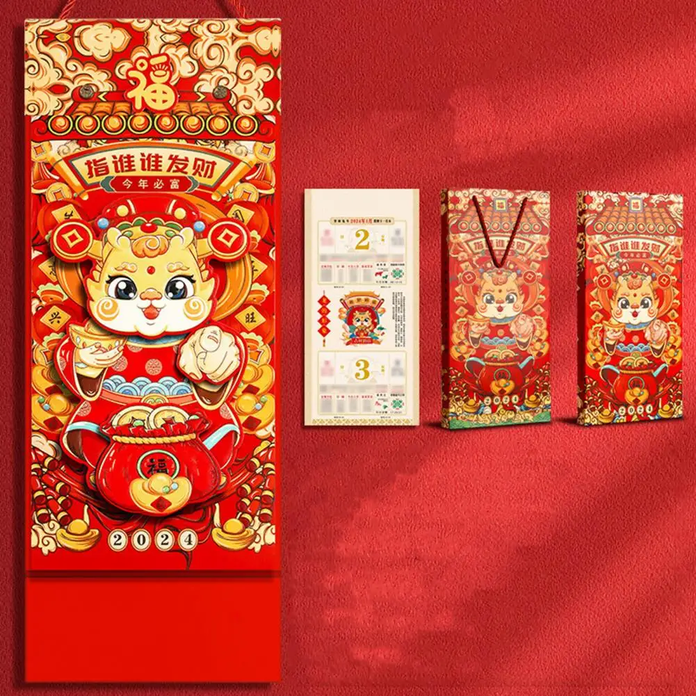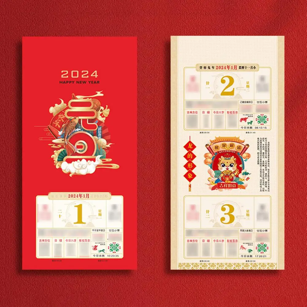 Patrón festivo Impresión Calendario chino 2024 Año lunar chino del Dragón Calendario de pared Festivo tradicional para el hogar