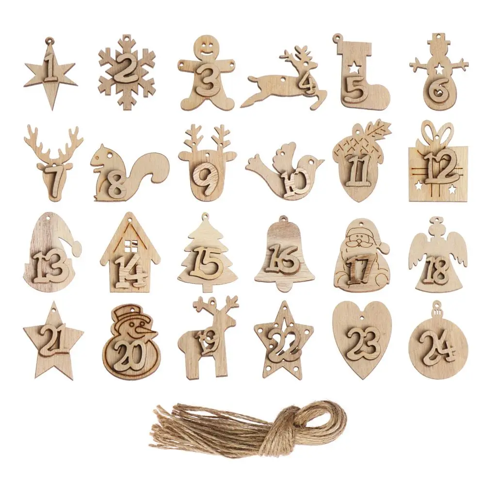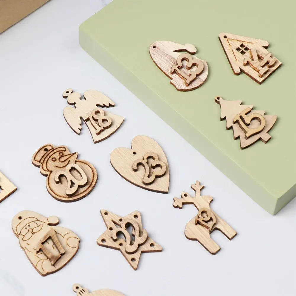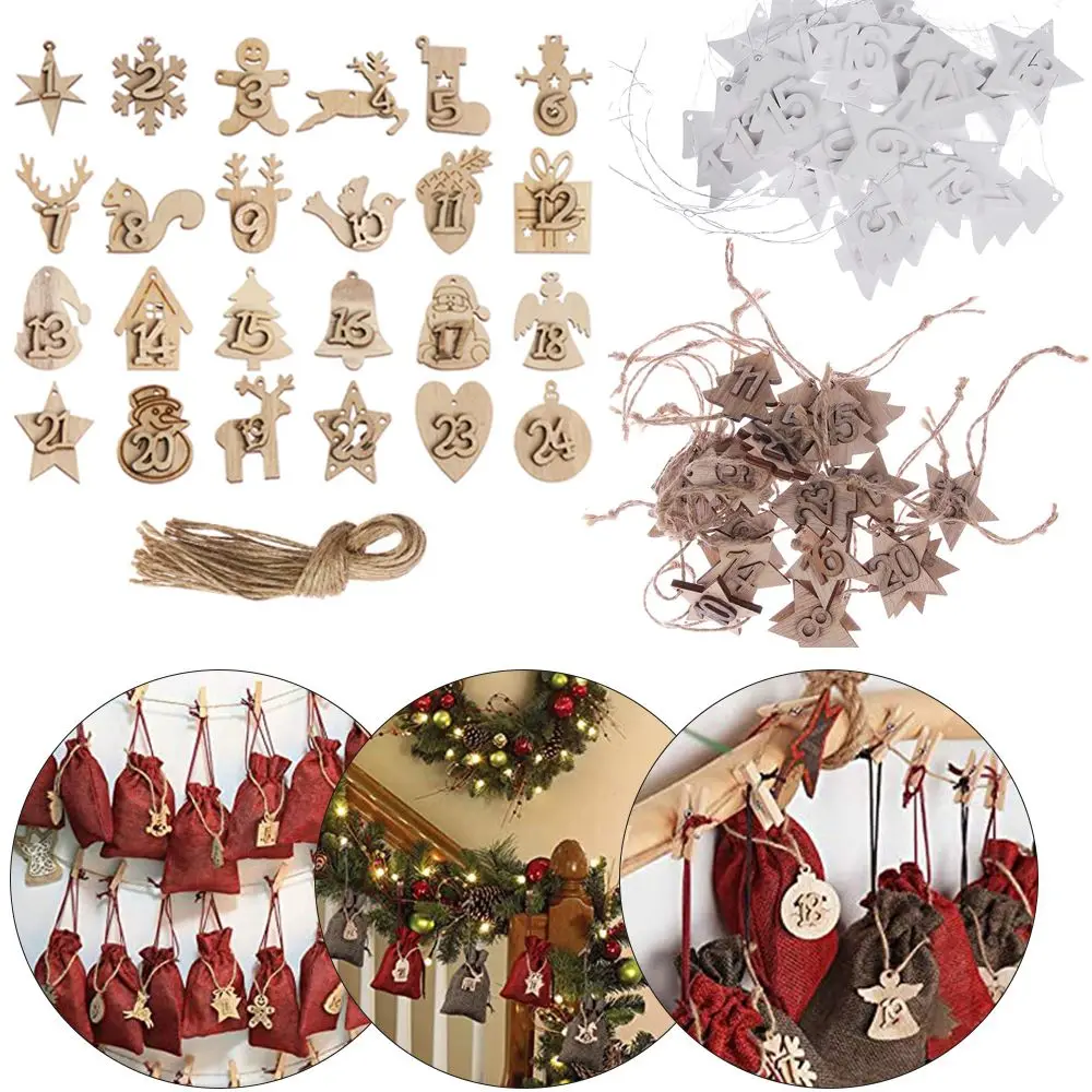 Comprar Calendario de Navidad de 24 piezas, colgante de madera DIY, bolsas de regalo de Navidad, Calendario de Adviento, tarjeta colgante, cuenta atrás, etiquetas colgantes
