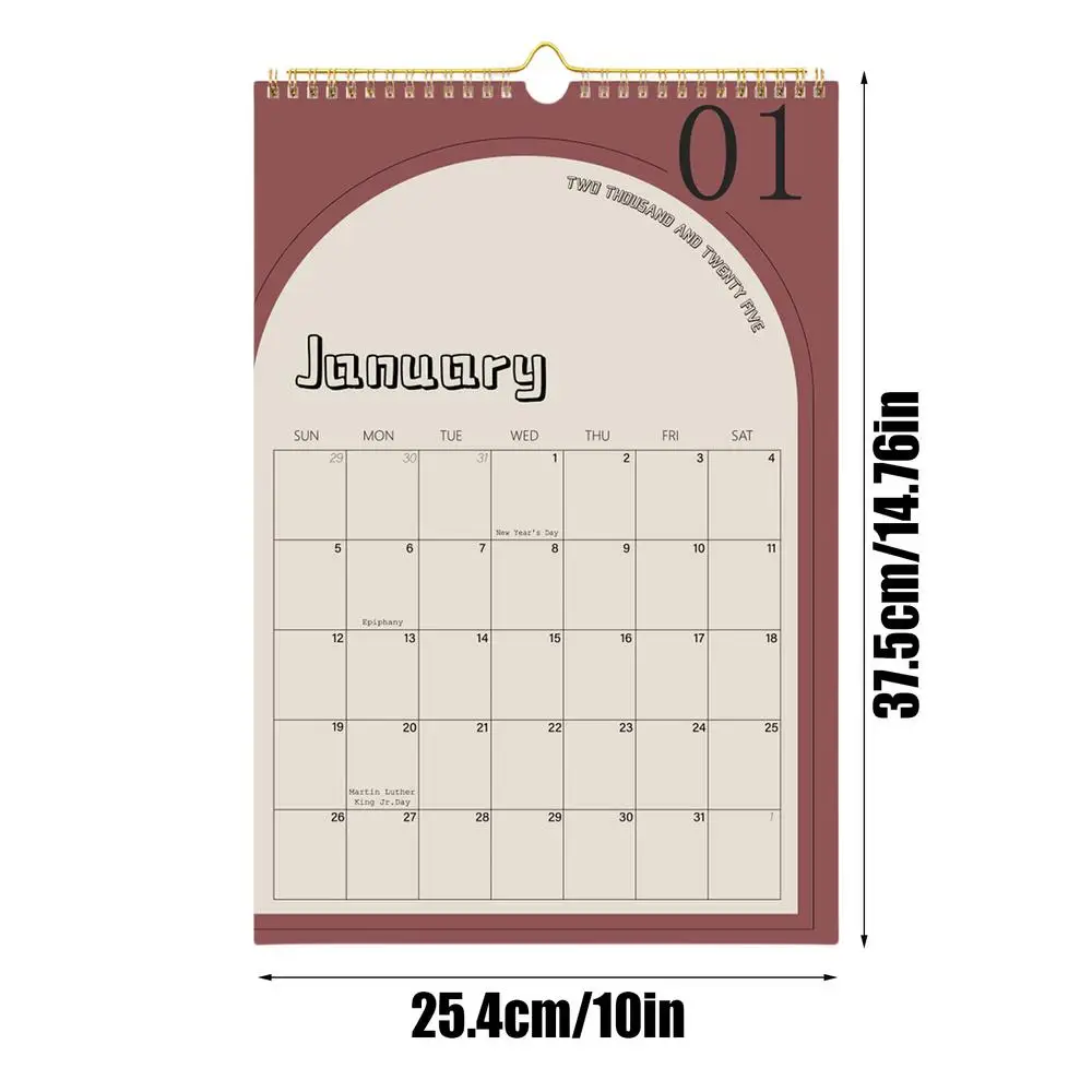 3. Grueso Papel: nuestro calendario de pared 2025-2026 está diseñado para evitar el sangrado de tinta y las imágenes fantasma causadas por los instrumentos de escritura, asegurando que sus notas se mantengan limpias y fáciles de leer. Hecho de papel de alta calidad.