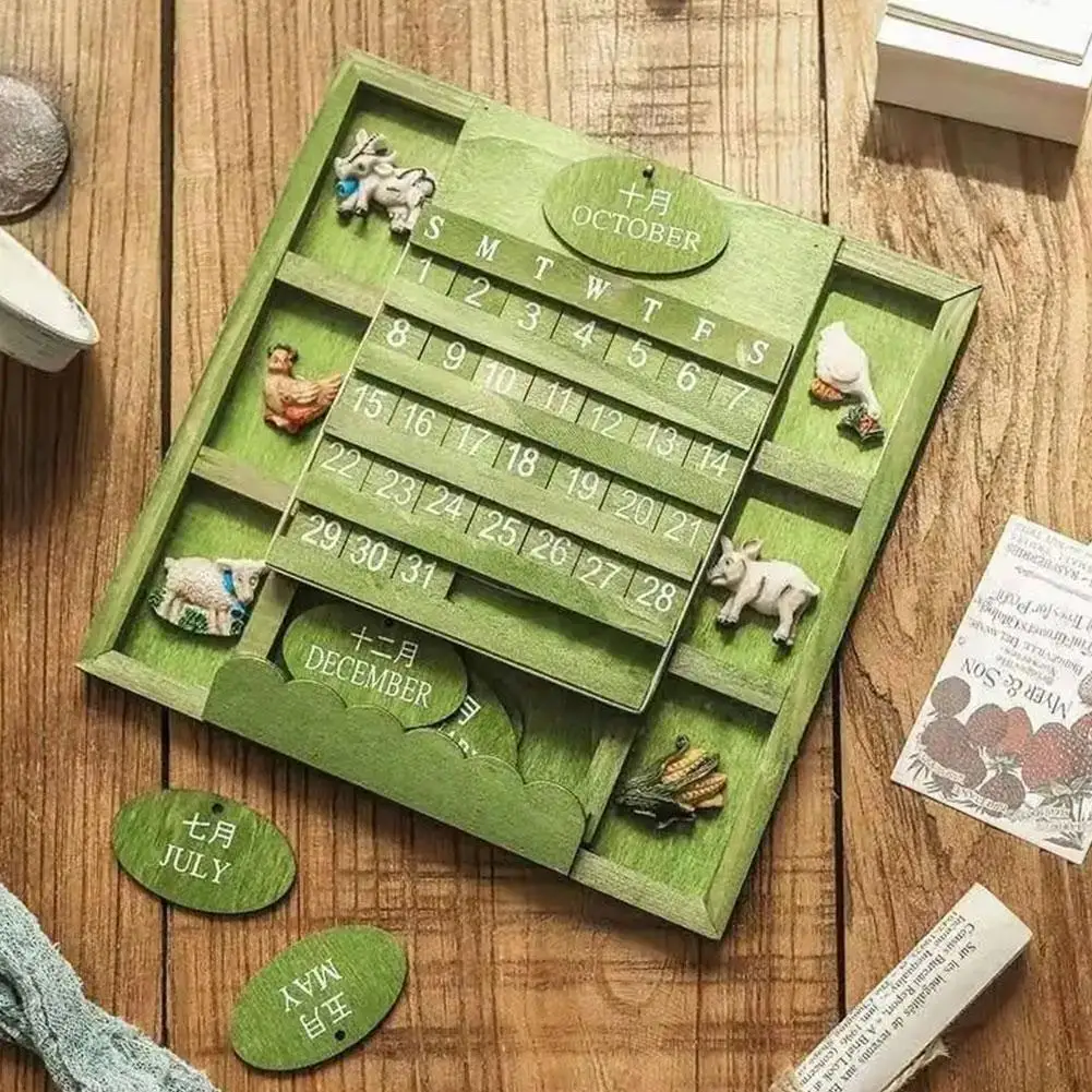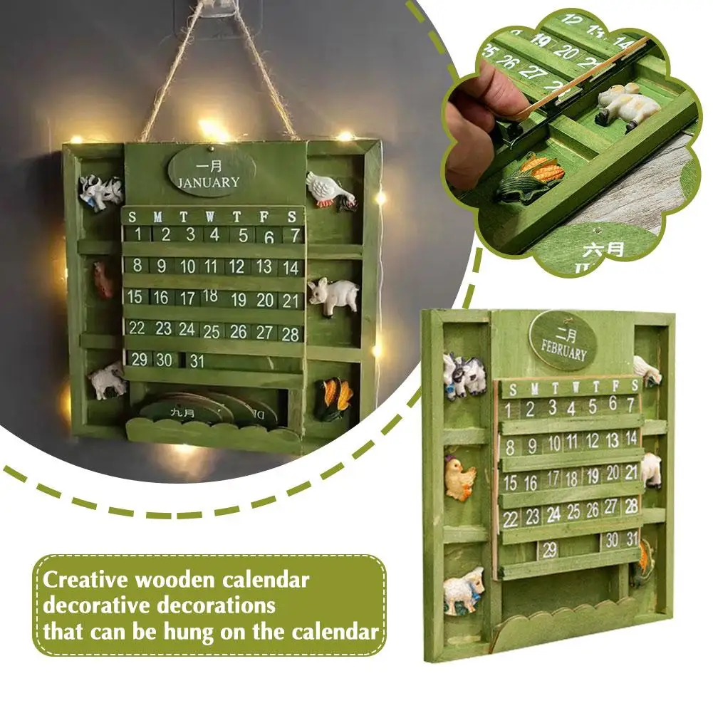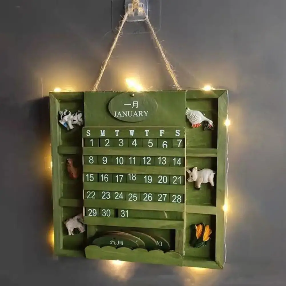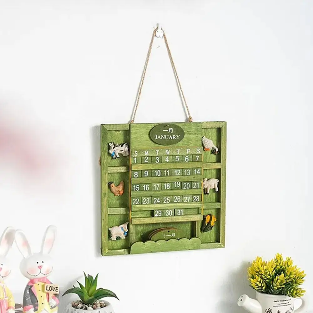 Comprar Calendario perpetuo de madera montado en la pared para decoración del hogar, planificador anual de bricolaje, estilo rústico, escritorio, granja, I2S1