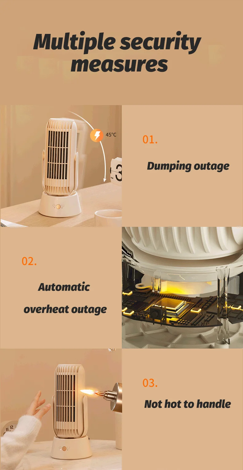 4.La seguridad está garantizada=calentamiento cerámico PTC + protección de fusibles + protección hipertermica + corte