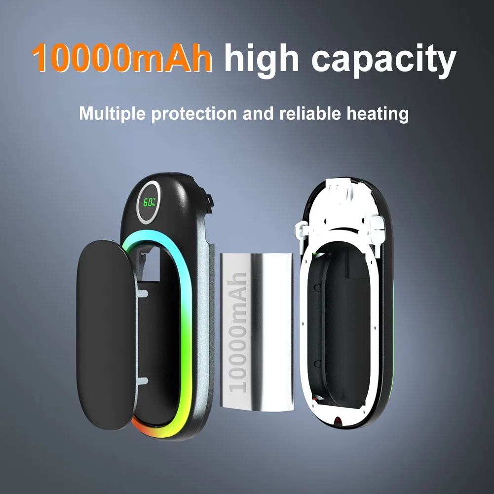 3.Calentador de manos portátil de 10000 mAh:Llévalo fácilmente con una mano o guárdalo en tu bolsillo.Este dispositivo versátil decalentadores de manos reutilizables powerbankPuede calentar sus manos, pies, rodillas o abdomen.Llévalo contigo durante actividades deportivas, pesca, senderismo, camping, esquí, viajes o cualquier aventura al aire libre.
