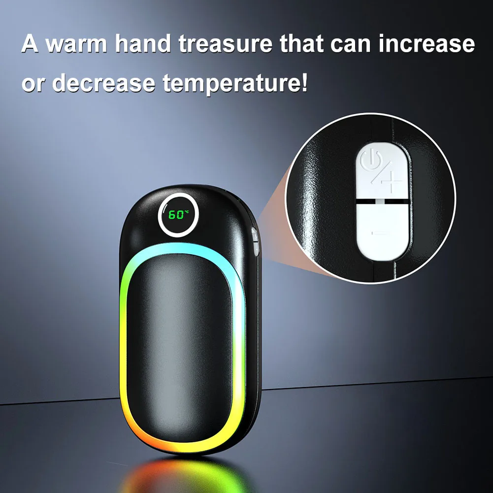 Característica:1.Temperatura ajustable de tres niveles:Mantente abrigado en los días fríos con la capacidad deCalentador portátil del cargador del banco de energíapara elegir la temperatura óptima para su comodidad.Experimenta un rápido 40°, 50°, o 60° aumento de temperatura en tan solo 3 segundos.