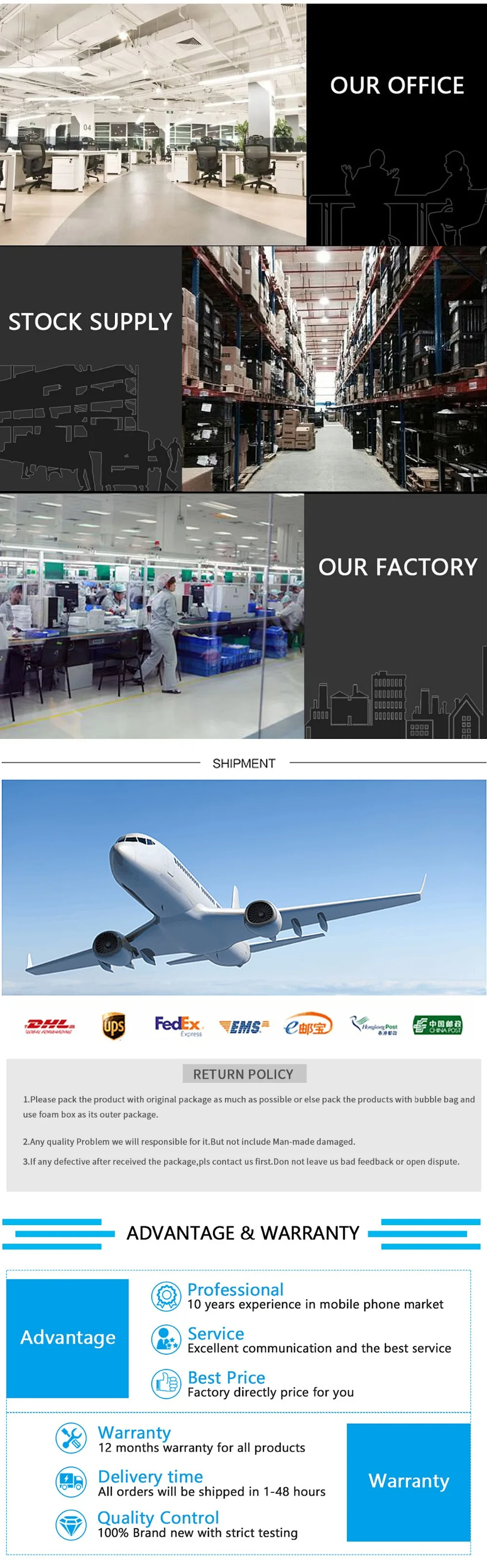 Solo vendemos productos de alta calidad, los clientes no se preocupan por la calidad de nuestros productos. Nuestras ventajas son la buena calidad y el mejor servicio.