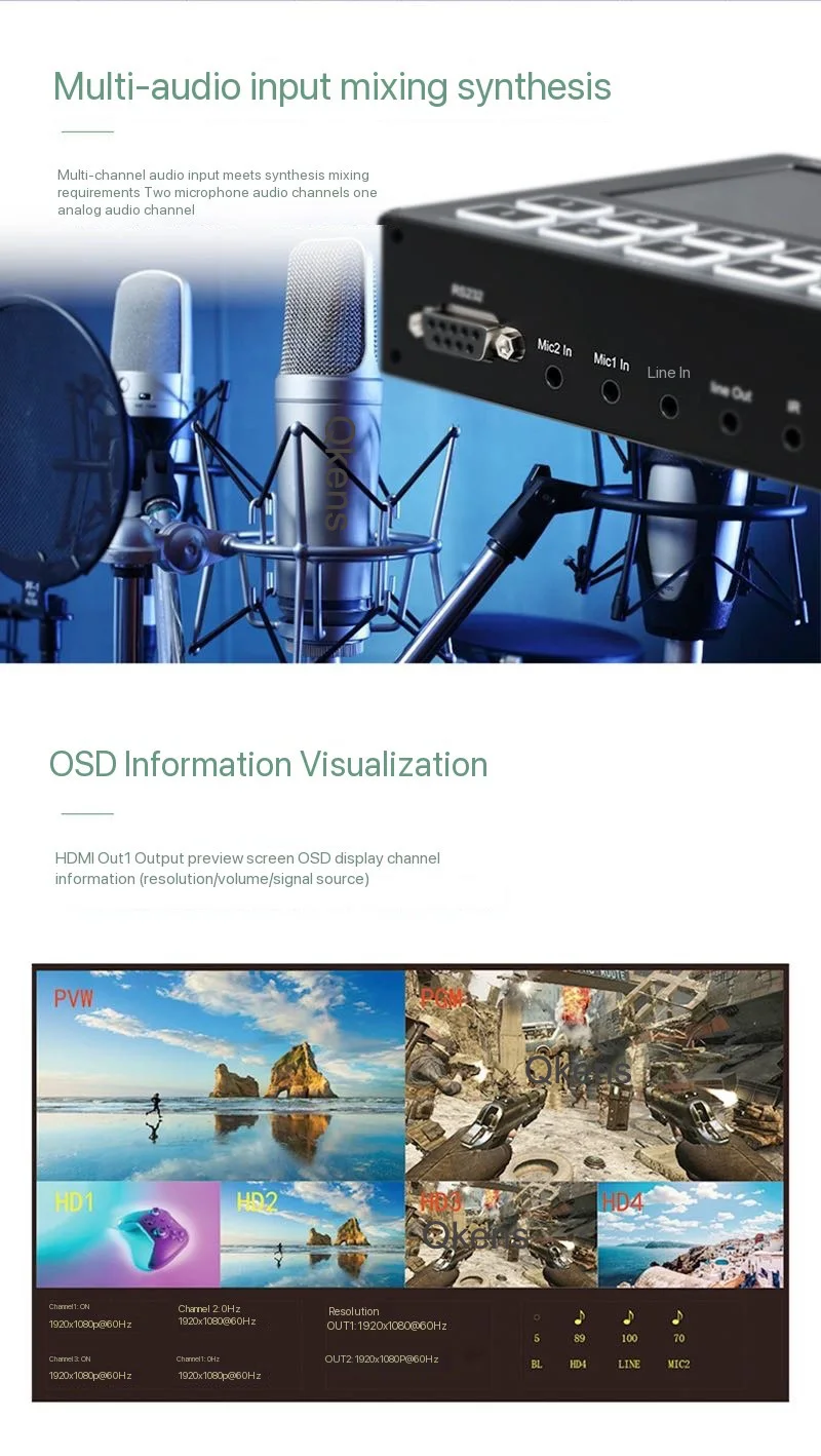 Este conmutador de vídeo de 4 vías para transmisión en vivo admite 4 resoluciones de entrada HDMI 1920X1080@60Hz,
