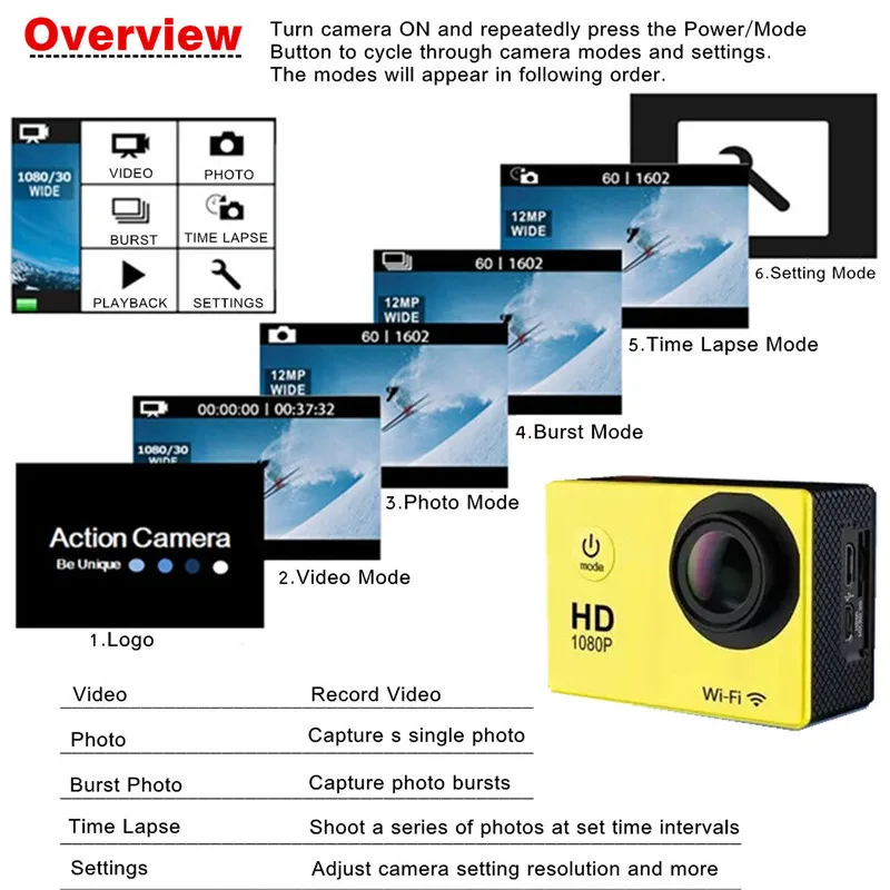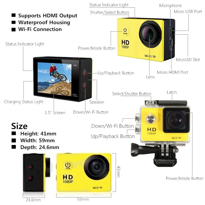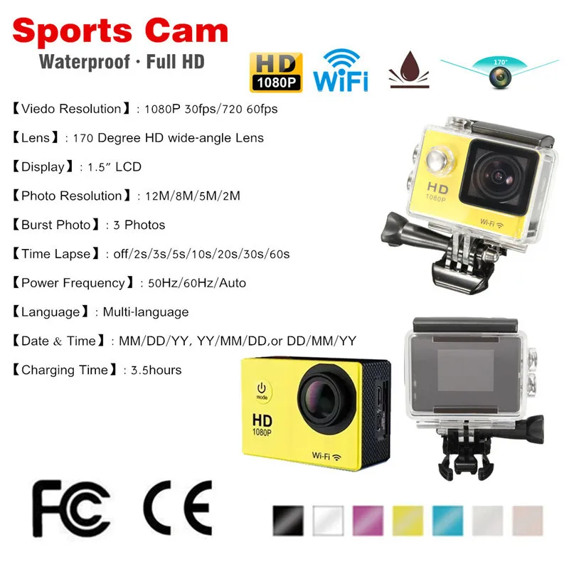 Comprar Cámara de Acción HD 1080P SJ5000, Ultra HD, 4K, 30fps, WiFi, 170D, casco impermeable, cámaras de grabación de vídeo, cámara deportiva