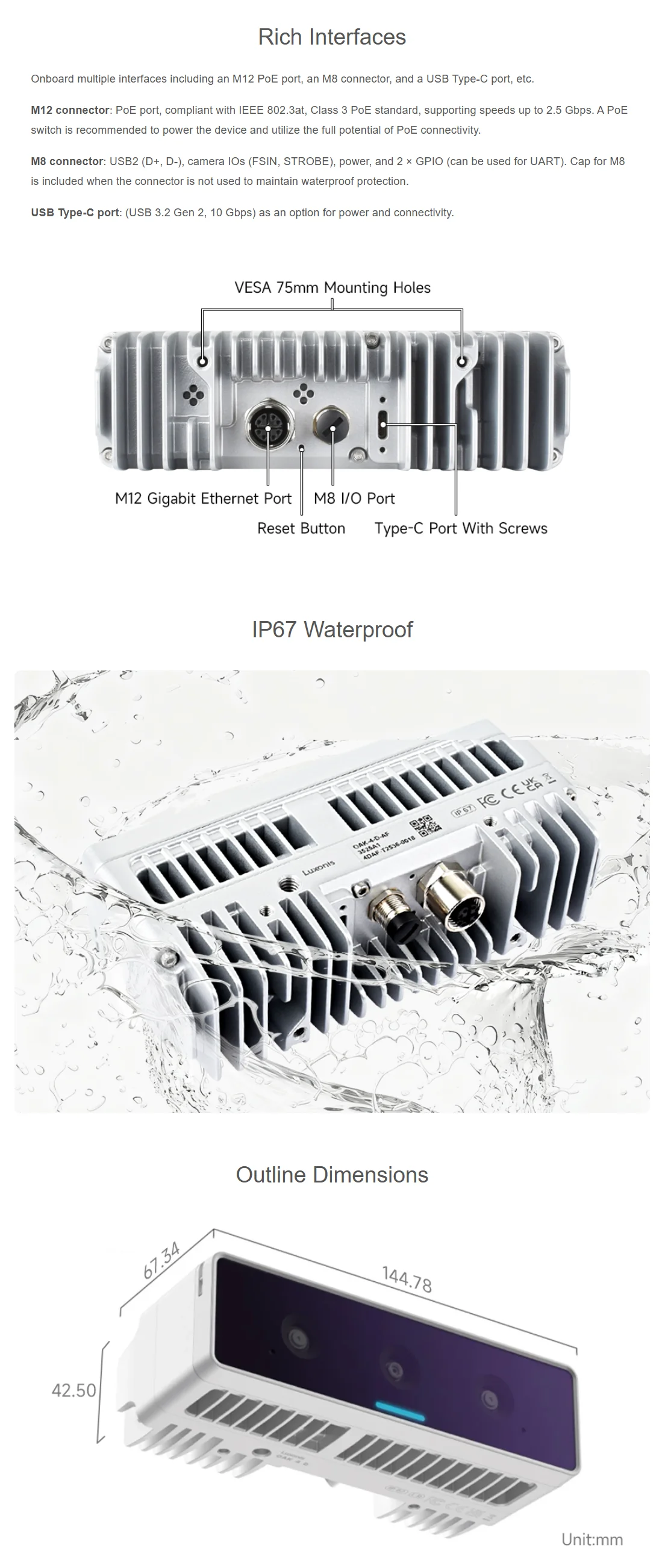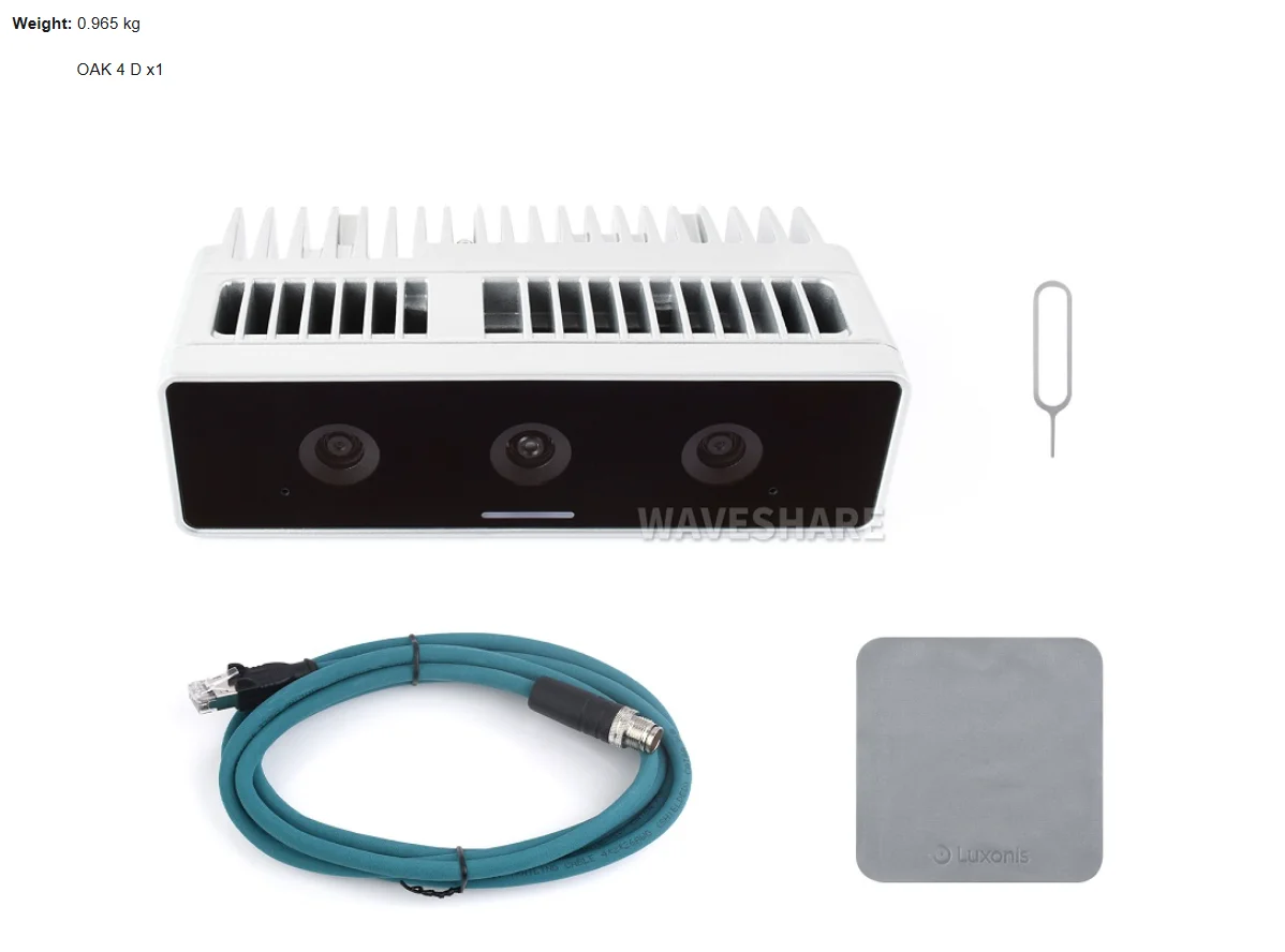 Cámara AI de visión de profundidad y borde estéreo Waveshare OAK-4D - 48 MP, 48 TOPS INT8 / 12 TOPS FP16 Inferencia