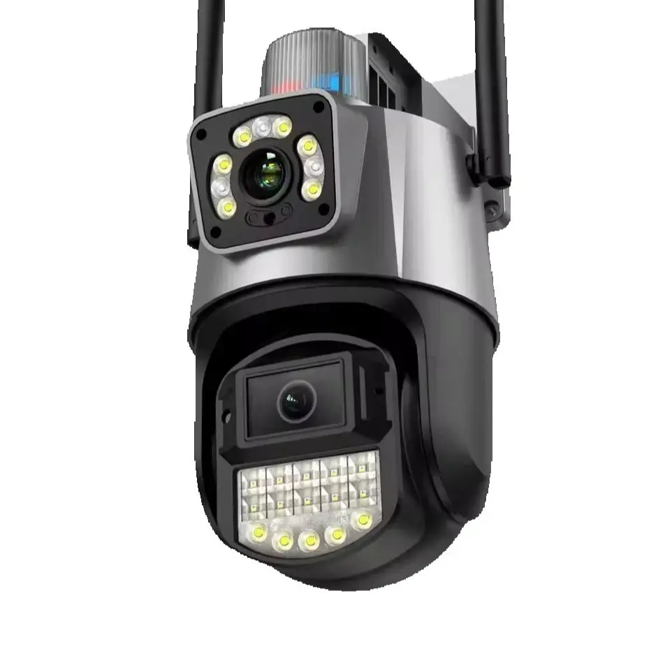 Equipada con tres lentes, esta cámara ofrece cobertura integral y flexibilidad en los ángulos de monitoreo.