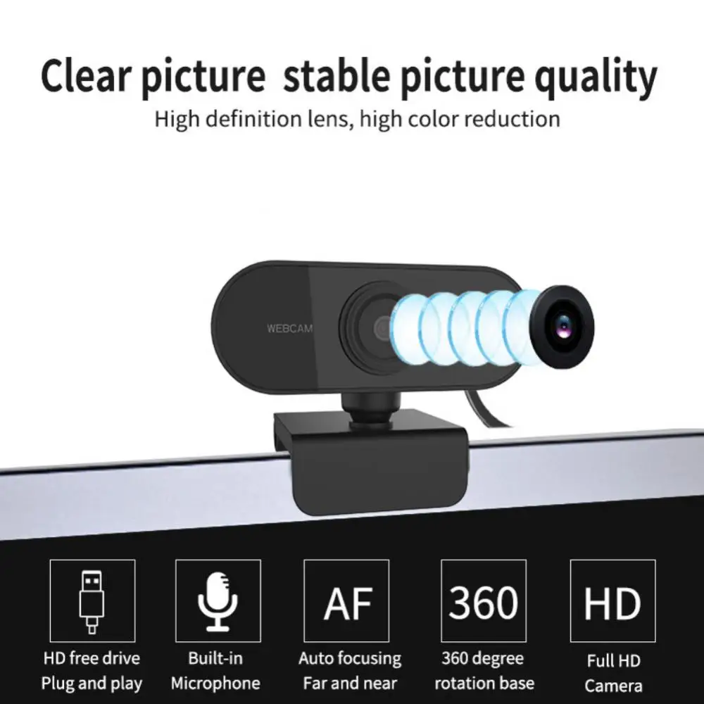 Webcam 1080P full HD webcam con micrófono incorporado conector USB es adecuado para PC, portátil, escritorio, YouTube Skype.