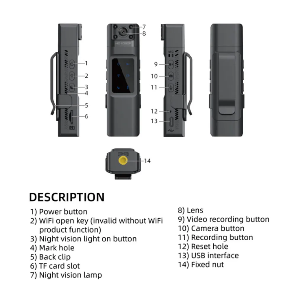 Comprar Cámara corporal con grabación HD de 1080P con visión nocturna, cámara de policía portátil para el hogar, protección de seguridad para aplicación de la ley al aire libre