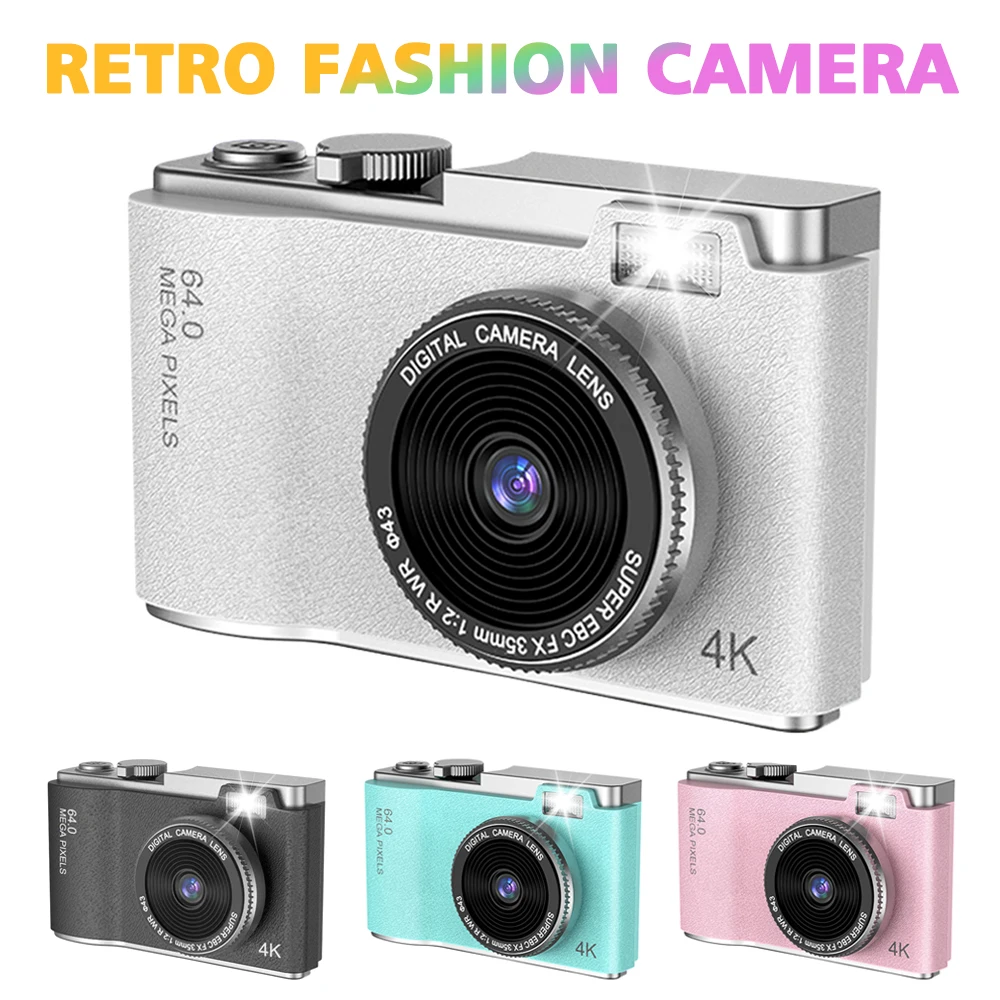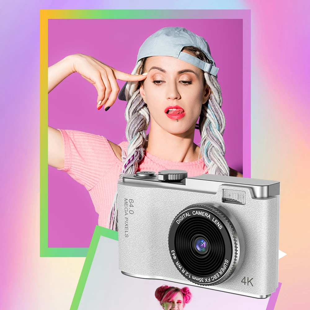 Comprar Cámara Digital 4K, videocámara para niños de 64MP con Zoom 16x antivibración, cámaras compactas de 1080P para fotografía de principiantes