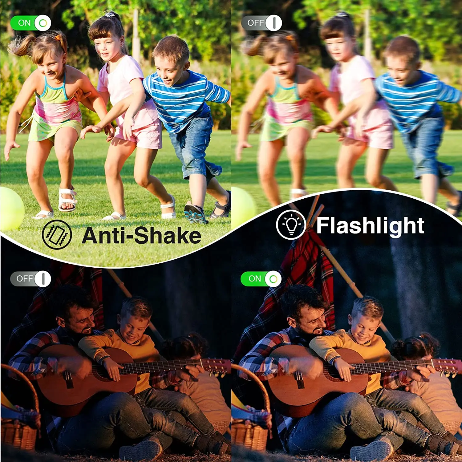 Característica:【Cámara digital de 44MP y resolución FHD 1080P 】 Esta cámara digital tiene hasta 44 millones de píxeles, puede soportar una resolución de imagen de 44MP y una resolución de vídeo de 1080p que tiene un excelente rendimiento de grabación y fotografía. Esta cámara compacta admite zoom digital 16X, puede acercar o alejar las imágenes usando el botón W/T. La Pantalla de 2,7 pulgadas facilita la visualización de imágenes, le permite disfrutar de la toma de fotos/vídeos en cualquier lugar.【Grabación de video y cámara web】 Esta cámara digital se puede utilizar como cámara web. Equipada con modo de video y micrófono incorporado, Puede grabar videos más suaves y estables. La mini cámara digital también se puede utilizar como una cámara web, conecte la cámara al ordenador a través de un cable USB, puede hacer videollamadas o transmitir en vivo. Y también puede abrir la luz del flash incorporada de acuerdo con las necesidades de la escena, excelente rendimiento en condiciones de poca luz.【Cámara multifuncional y fácil de usar】 La cámara de video digital para niños tiene múltiples funciones, admite zoom 16X, función de pausa, antivibración, lapso de tiempo, cámara lenta, disparo continuo, detección de movimiento, detección de rostros, temporizador automático, antivibración, captura de sonrisas, etc. Esta pequeña cámara puede satisfacer todas sus necesidades y es muy fácil de usar y controlar.【Regalo perfecto y garantía】 El diseño ligero y el pequeño tamaño hacen que la cámara de video sea conveniente para llevar y capturar momentos felices en cualquier momento y en cualquier lugar. Esta cámara de bolsillo es una gran opción para viajar y el uso diario, también es muy popular para cumpleaños, Navidad, regalo del Día de Acción de Gracias para adolescentes, niños y estudiantes, niños y niñas, grabando un hermoso momento navideño para usted y su familia.