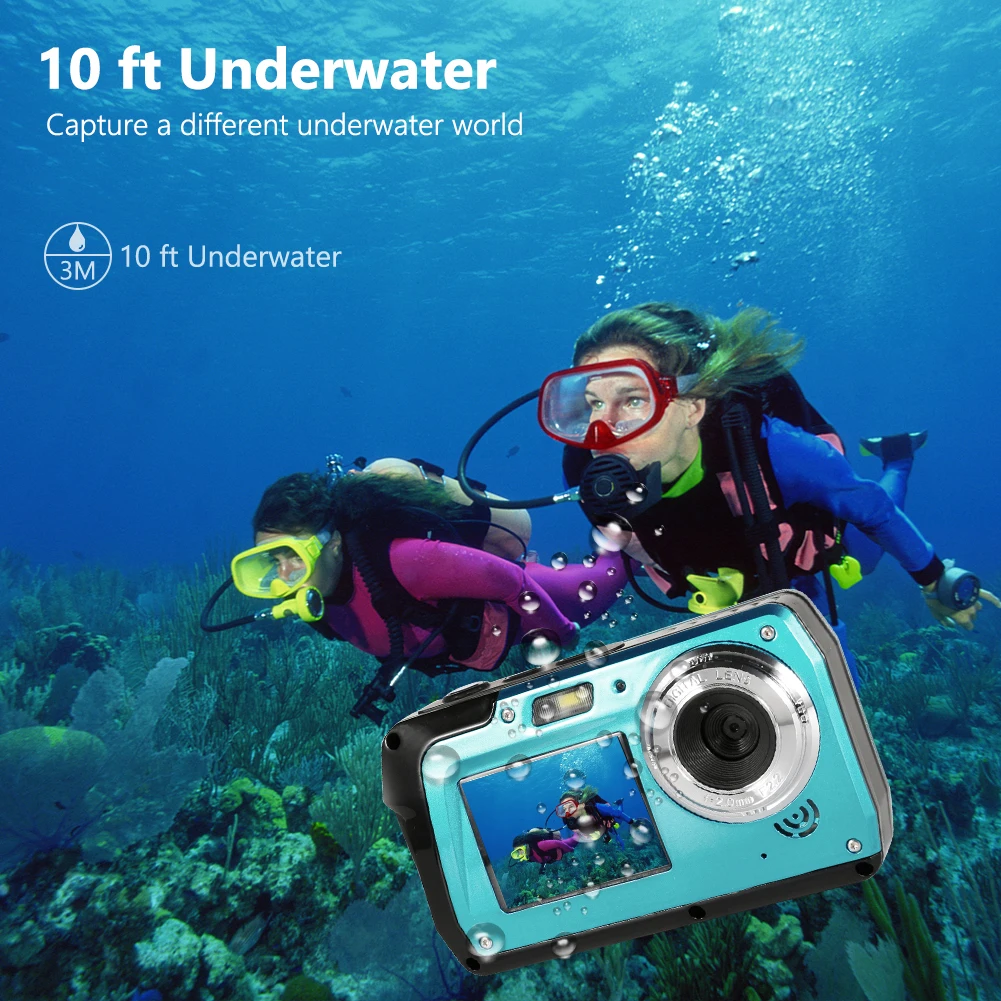 2. Cámara digital impermeable de 10 pies:Se puede sumergir en una profundidad de 10 pies durante una hora cada vez, y puede ser impermeable sin la necesidad de una carcasa. La natación, el esnórquel y el juego entre padres e hijos tienen actuaciones emocionantes.