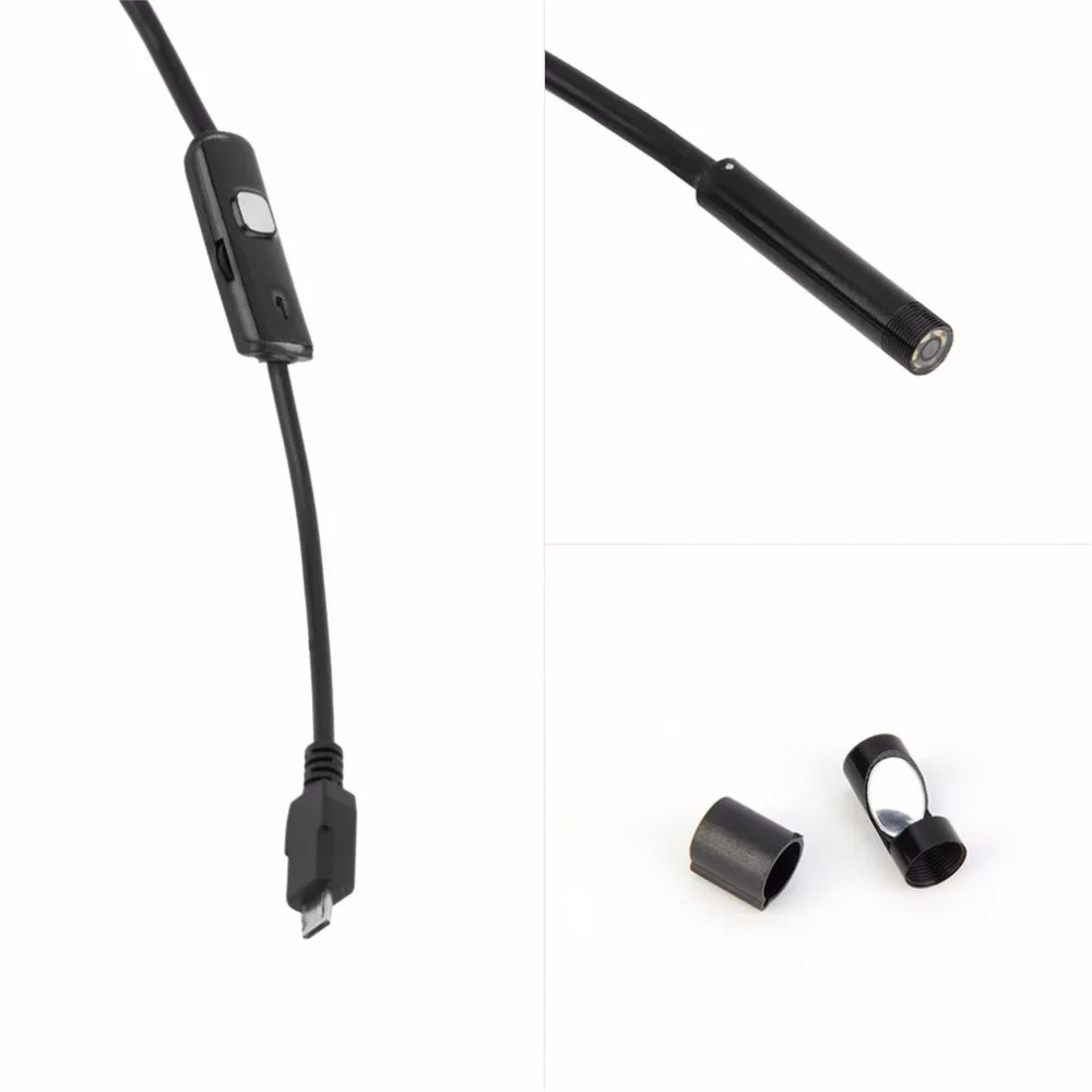 Comprar Cámara endoscópica USB con lente de 1M y 7mm, boroscopio de inspección de tubo de serpiente de alambre Flexible impermeable para teléfonos Android, Compatible con OTG