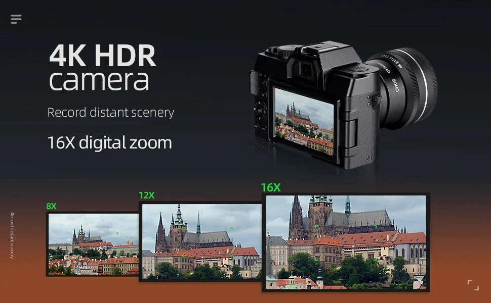 【Cámara digital con lente gran angular y lente macro】La cámara 4K está equipada con una lente gran angular profesional desmontable de 52 mm y una lente macro, que es muy adecuada para fotografías de primeros planos de escenas grandes y objetos pequeños.La lente gran angular puede ampliar el ángulo de visión hasta 120 grados para proporcionar una gama más amplia de vistas.Con la lente macro, puedes tomar fotografías de primeros planos con detalles claros como flores.(Nota: para tomar una foto de cerca, debe quitar la lente gran angular para evitar que no pueda enfocar)