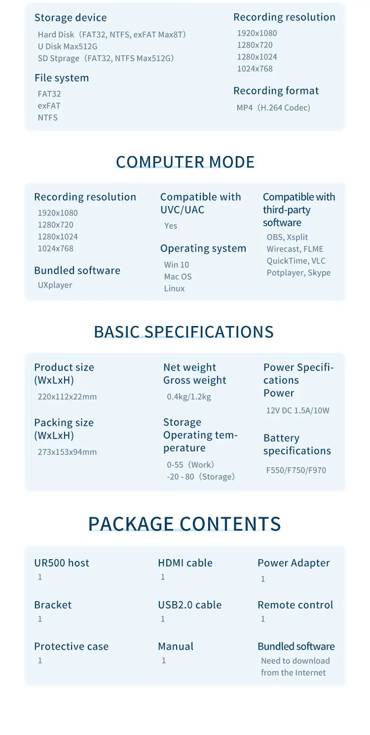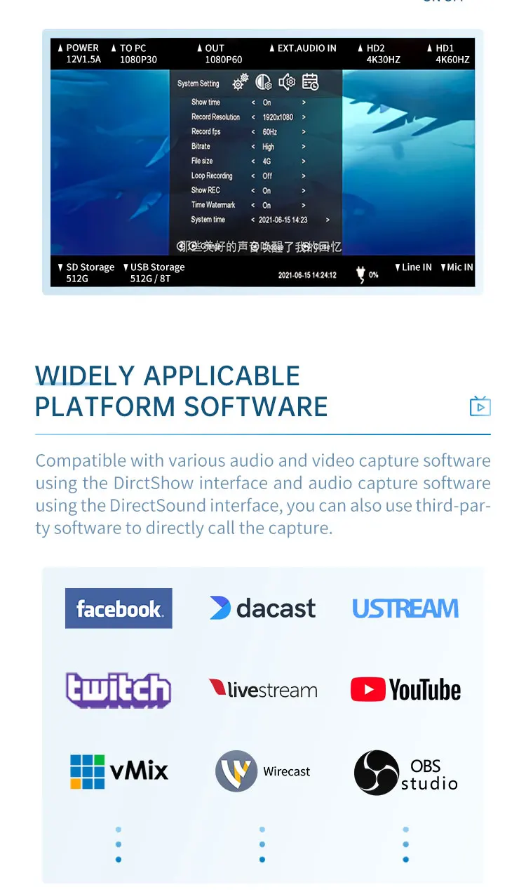 Flash USB Drive(up to 512G),Harddisk(up to 8T),SD(up to 512G)