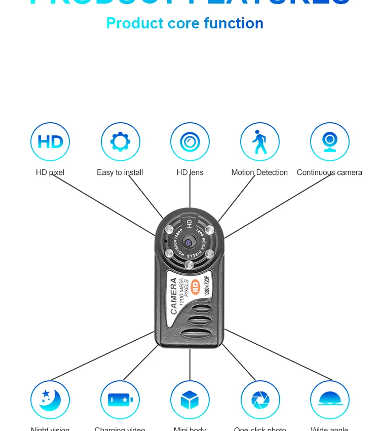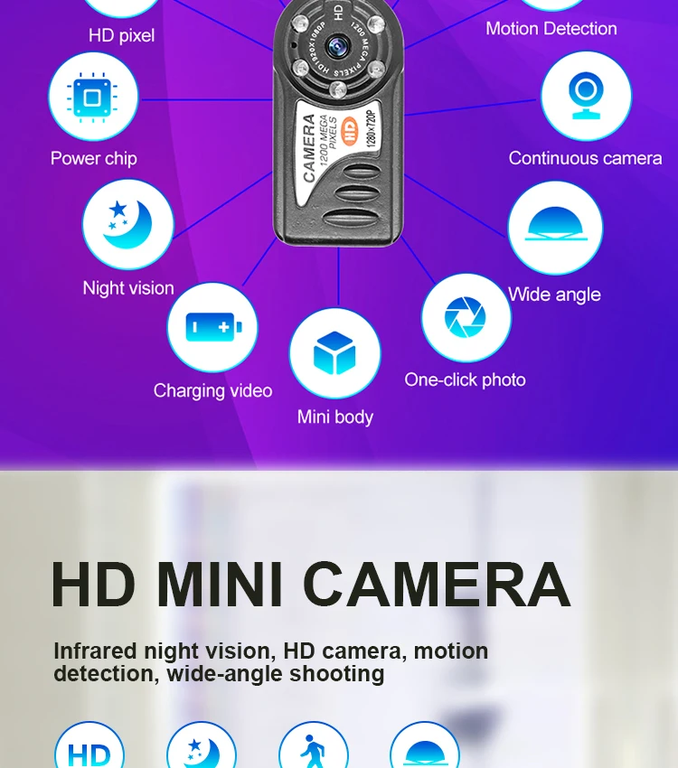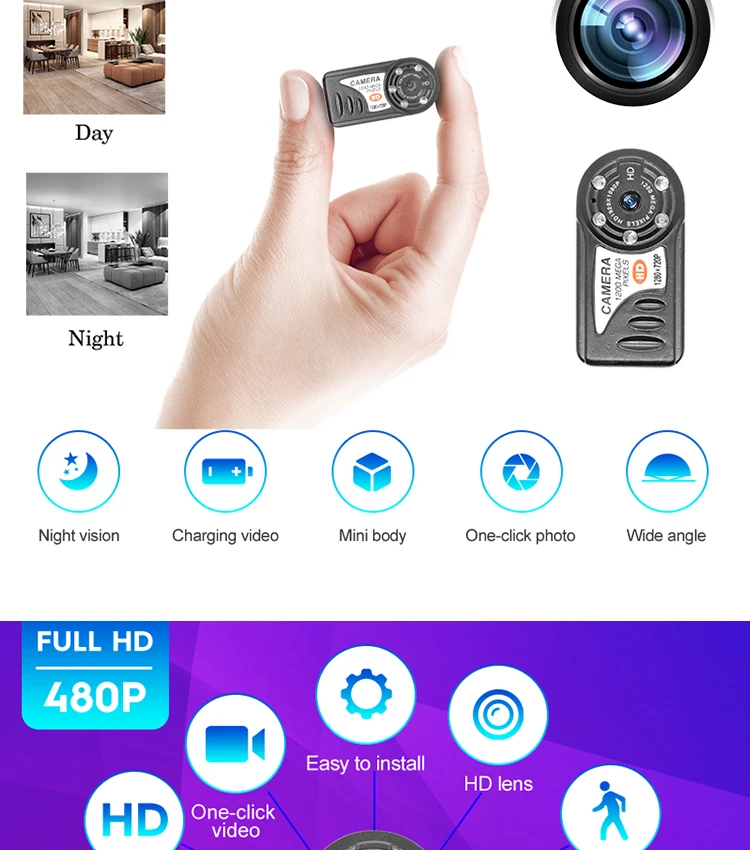 Comprar Cámara grabadora de fotografía aérea, videocámara pequeña HD de visión nocturna, gran angular, detección de movimiento DV