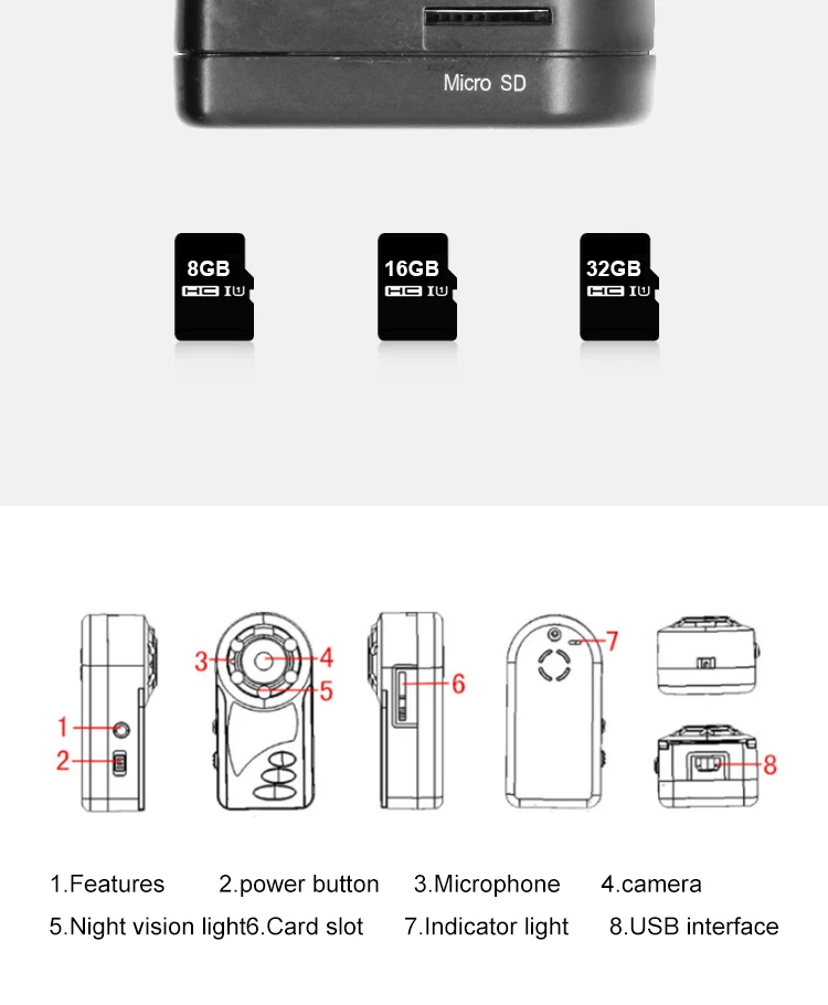 Cámara Fotografía aérea Grabadora Visión nocturna HD Cámara pequeña Gran angular Disparo Movimiento DV Detección de cámara