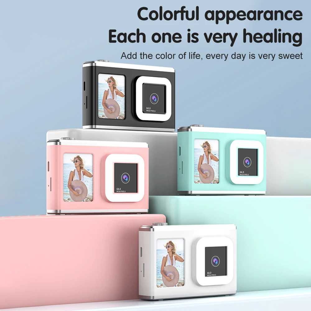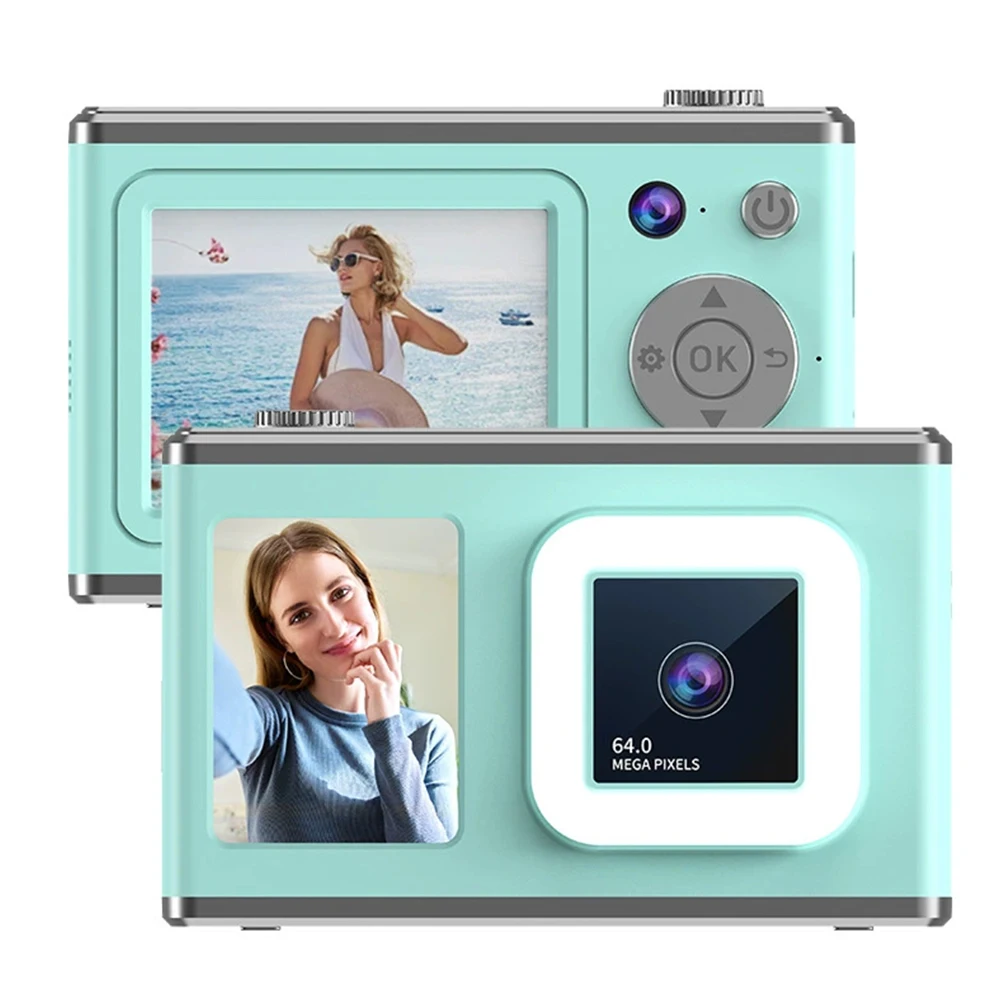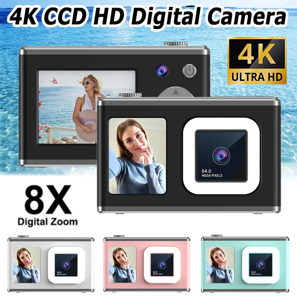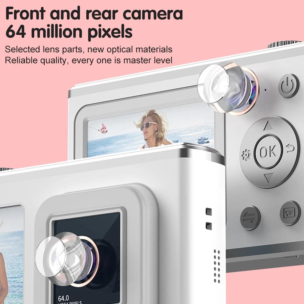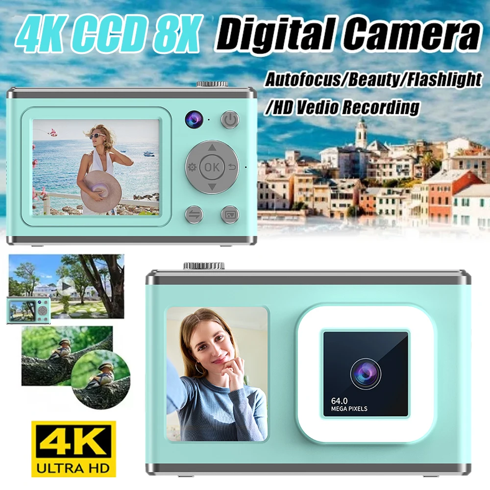Grabadora de vídeo con cámara Digital de 64MP, pantalla de 2,4 pulgadas, videocámara para niños, lámpara Flash, Zoom 8x, cámara compacta para fotografía principiante