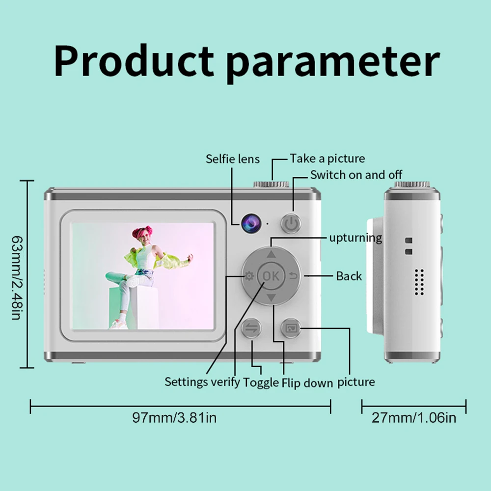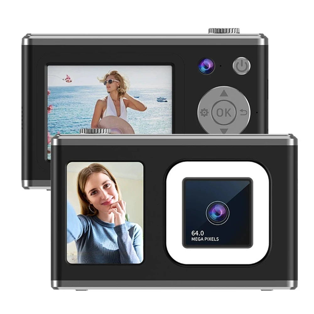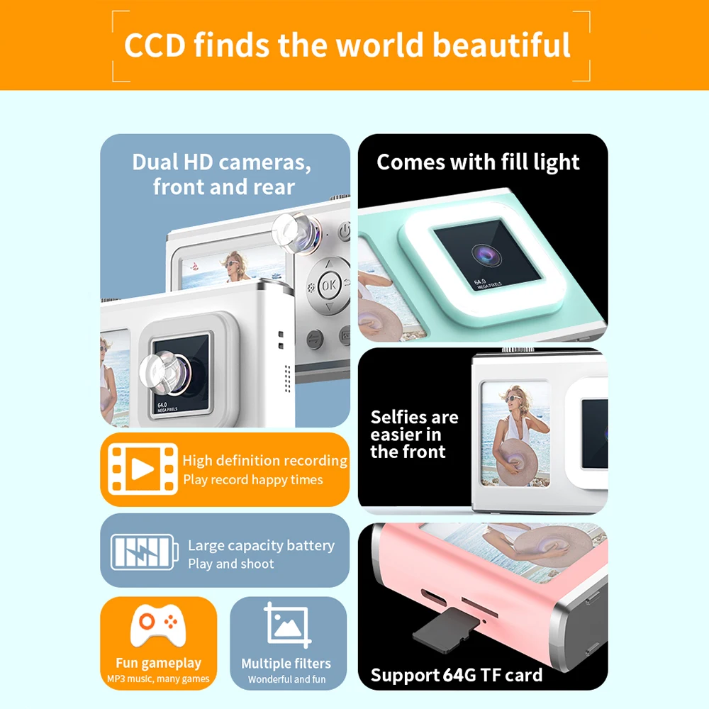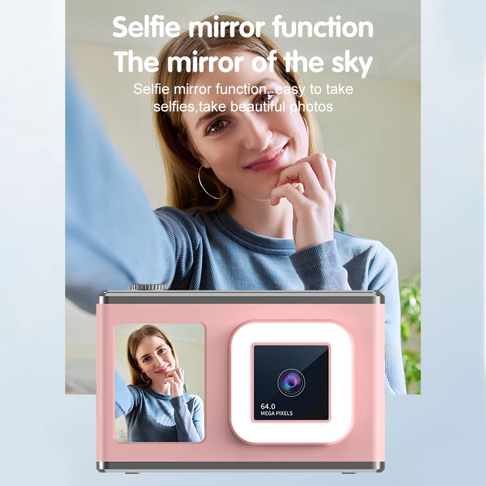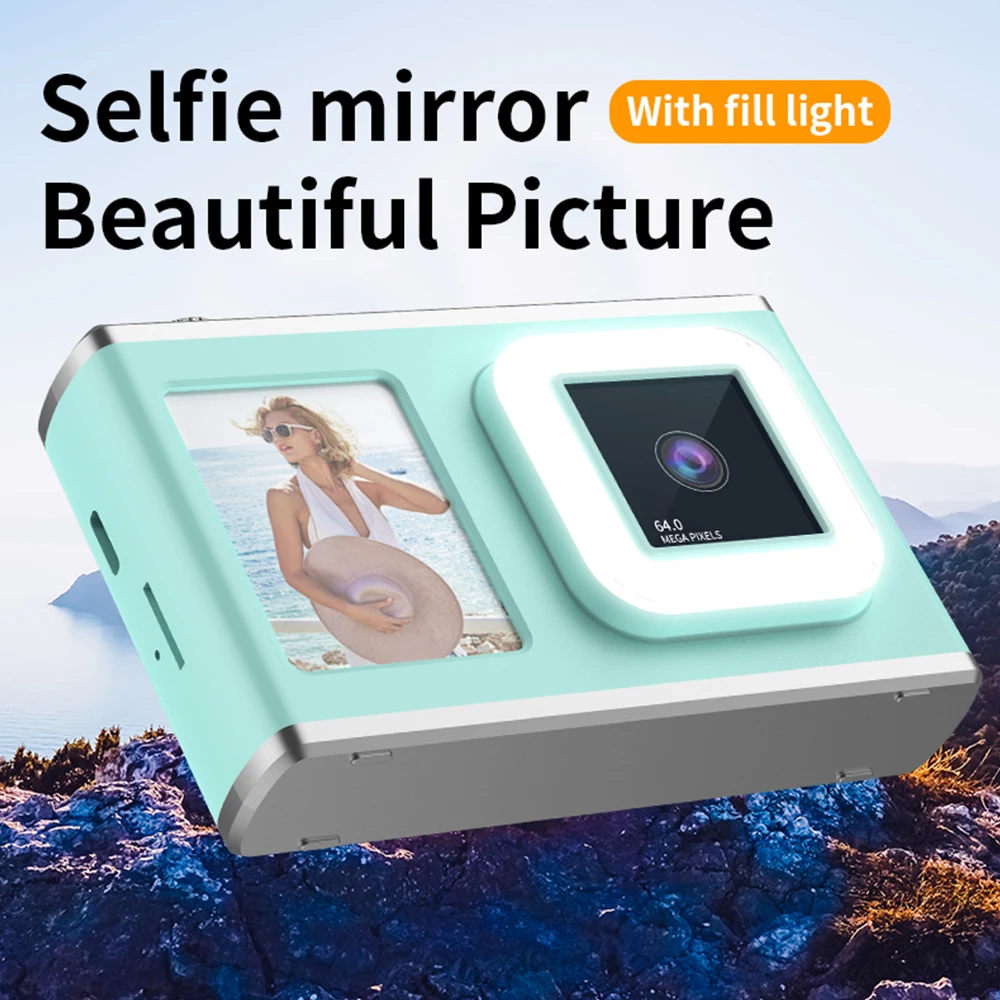 Grabadora de vídeo con cámara Digital de 64MP, pantalla de 2,4 pulgadas, videocámara para niños, lámpara Flash, Zoom 8x, cámara compacta para fotografía principiante