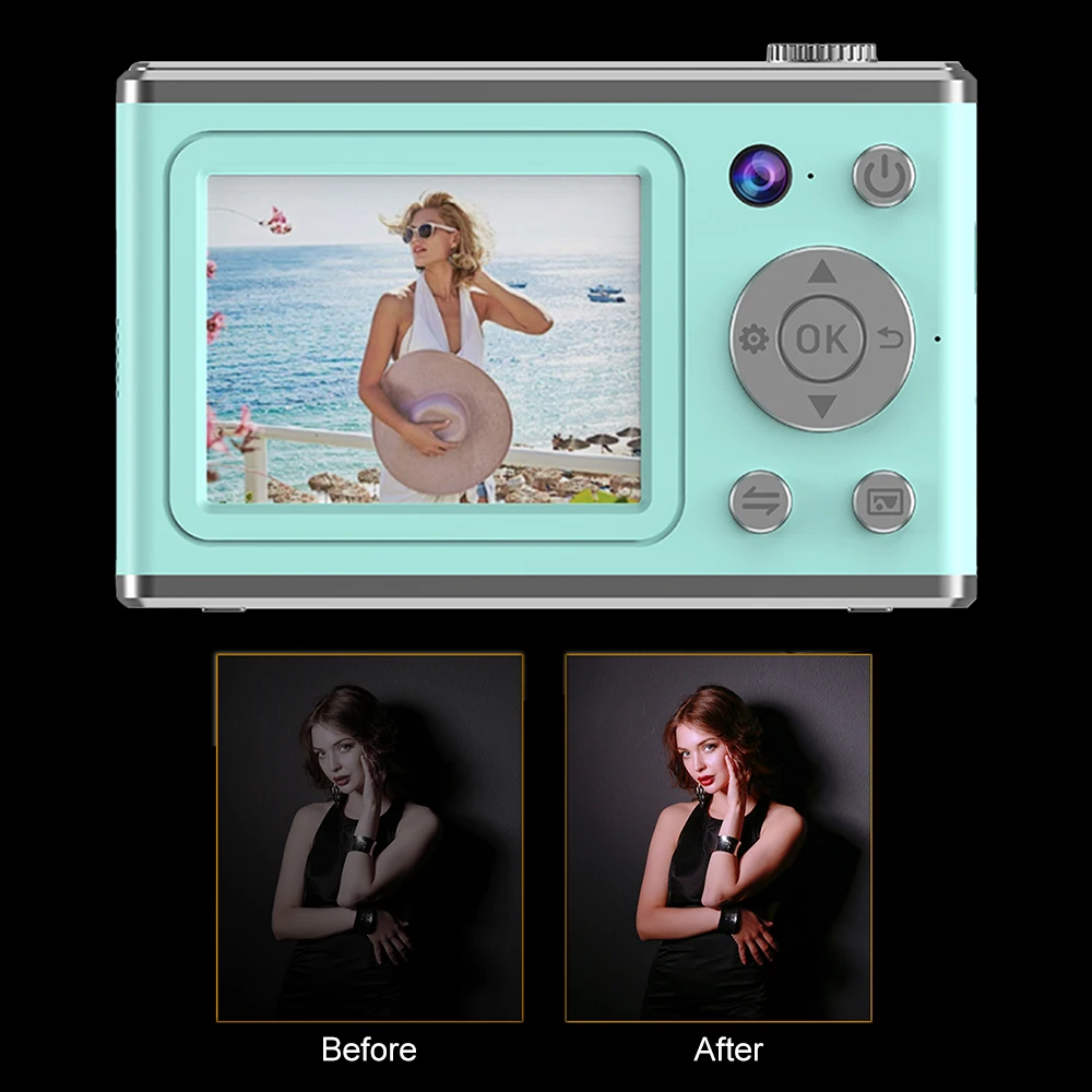1.64 millones de píxeles antes y después, graba momentos de felicidad súper claros.Componentes de lentes seleccionados, nuevos materiales ópticos, calidad confiable.