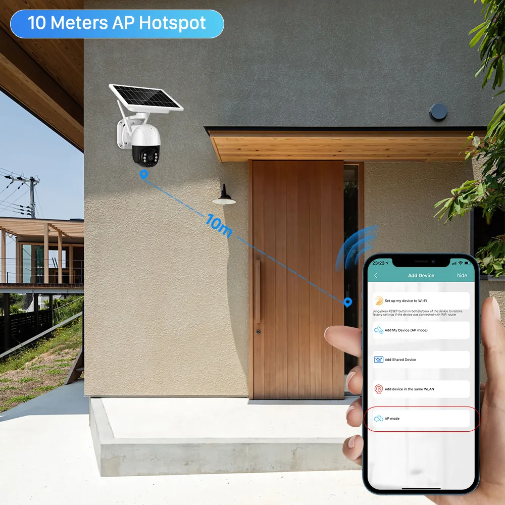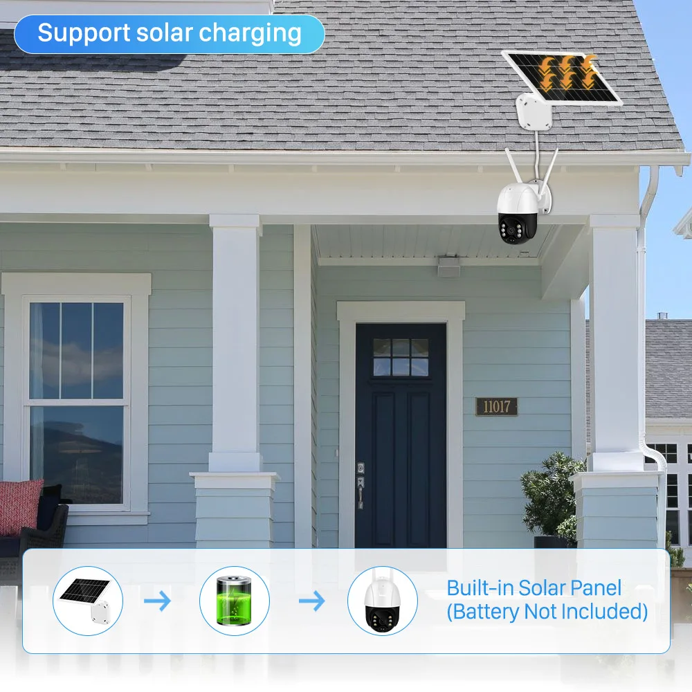 Cámara impermeable para exteriores con panel solar de 8W, inalámbrica, WiFi, IP, PTZ, videocámara con zoom digital, seguridad para el hogar, videovigilancia CCTVPanel solar de 8W, batería integrada ajustable, batería de litio de 13200HA, combinada con 24 horas de bajo consumo de energía, conmutación libre, nunca se apaga, activación rápida en 0,2 segundos.