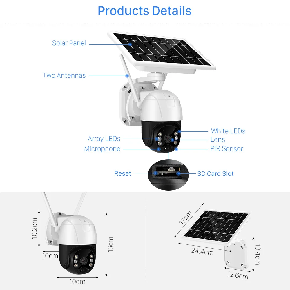 • Esta cámara inalámbrica para exteriores adopta un sensor de movimiento PIR altamente sensible y detección de radar, duplica el control y reduce las falsas alarmas.
