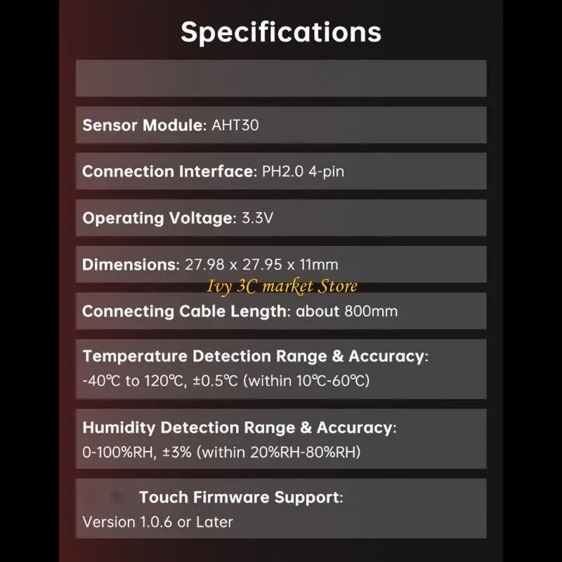 Especificaciones:Módulo de detección: AHT30