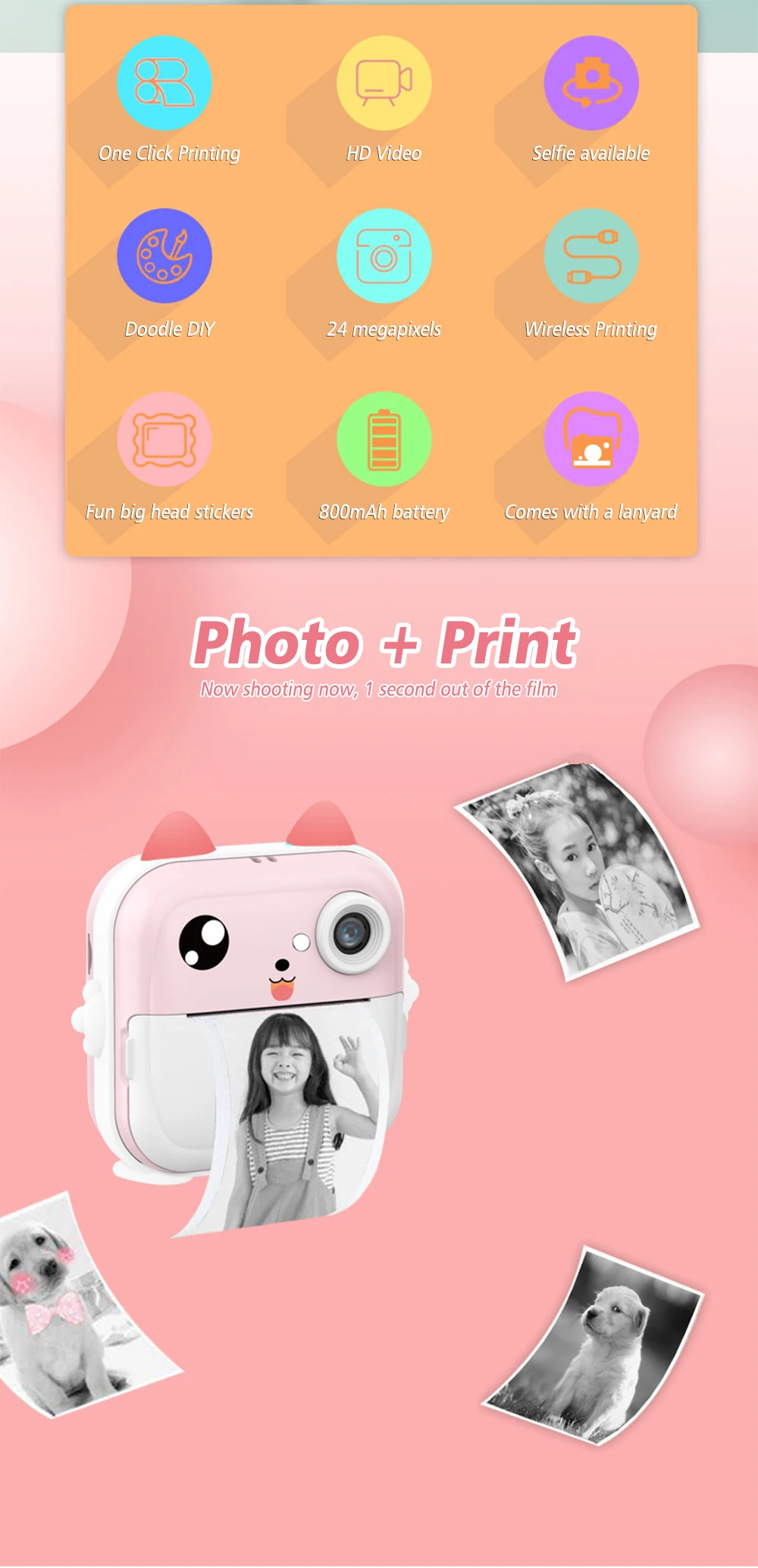 Función de la Cámara de impresión para niños: tomar fotos, imprimir
