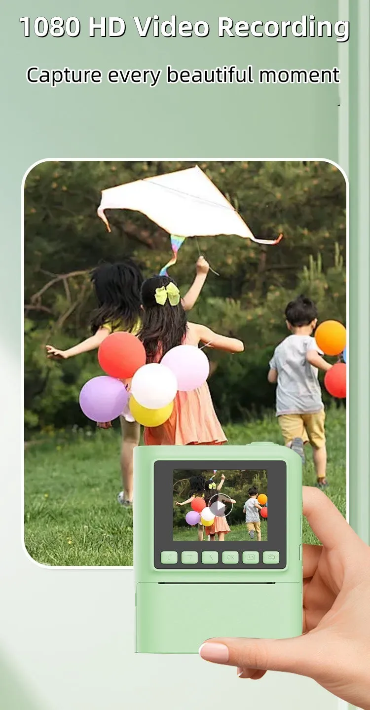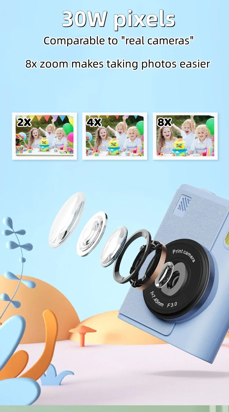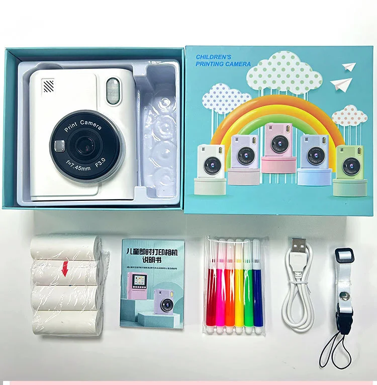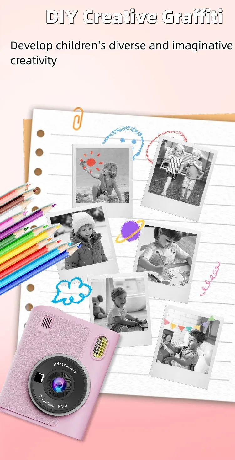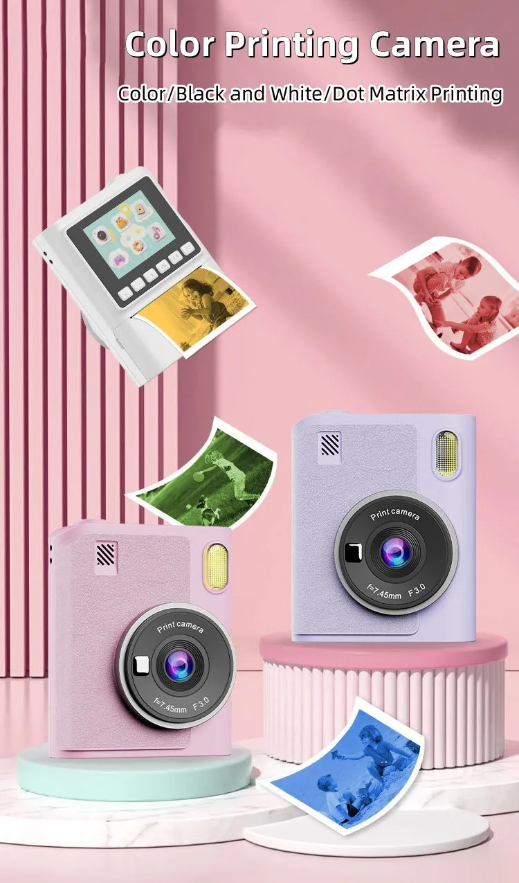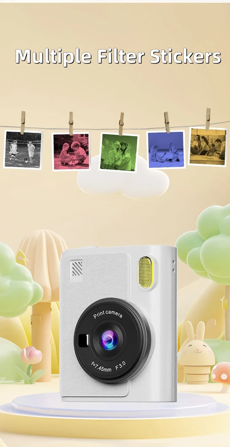 Cámara de impresión instantánea para niños con impresiones en color Filtros divertidos Efectos de espejo y marcadores de color para arte DIY para cumpleaños Navidad 32G