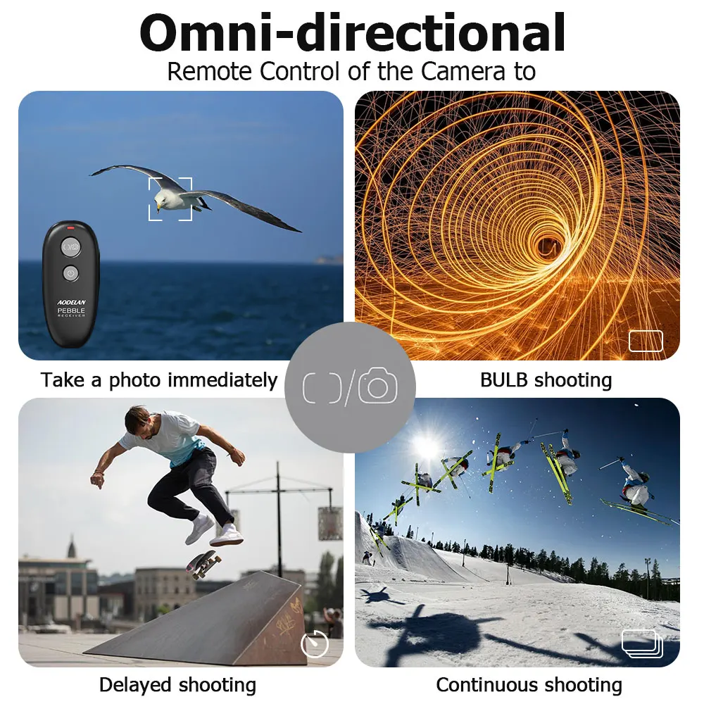 Utilice el disparador remoto inalámbrico AODELAN PEBBLE para reducir las sacudidas de la cámara y tomar fotografías más claras.