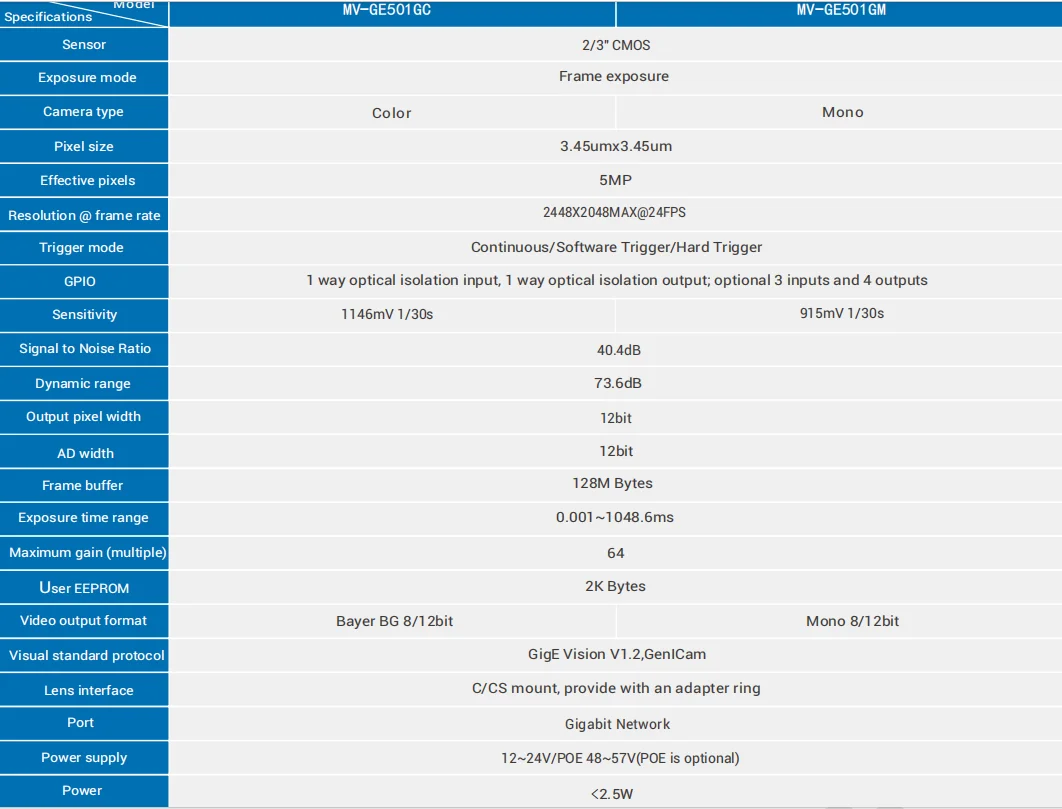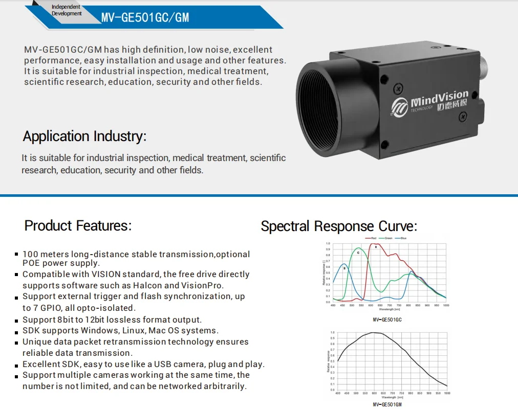 -SDK admite VC/C++, VB6, VB.NET, Delphi, C#, JAVA, Python, OpenCV.-El nombre de la cámara se puede modificar para distinguir varias cámaras fácilmente.Parámetros del productoInformación detalladaArtículo del productoCámara industrial Mindvsion de 5.0MP Cámara HD de 5MP directa de fábrica Color/mono para elegir Proporcionar halcon de soporte SDK, visión por