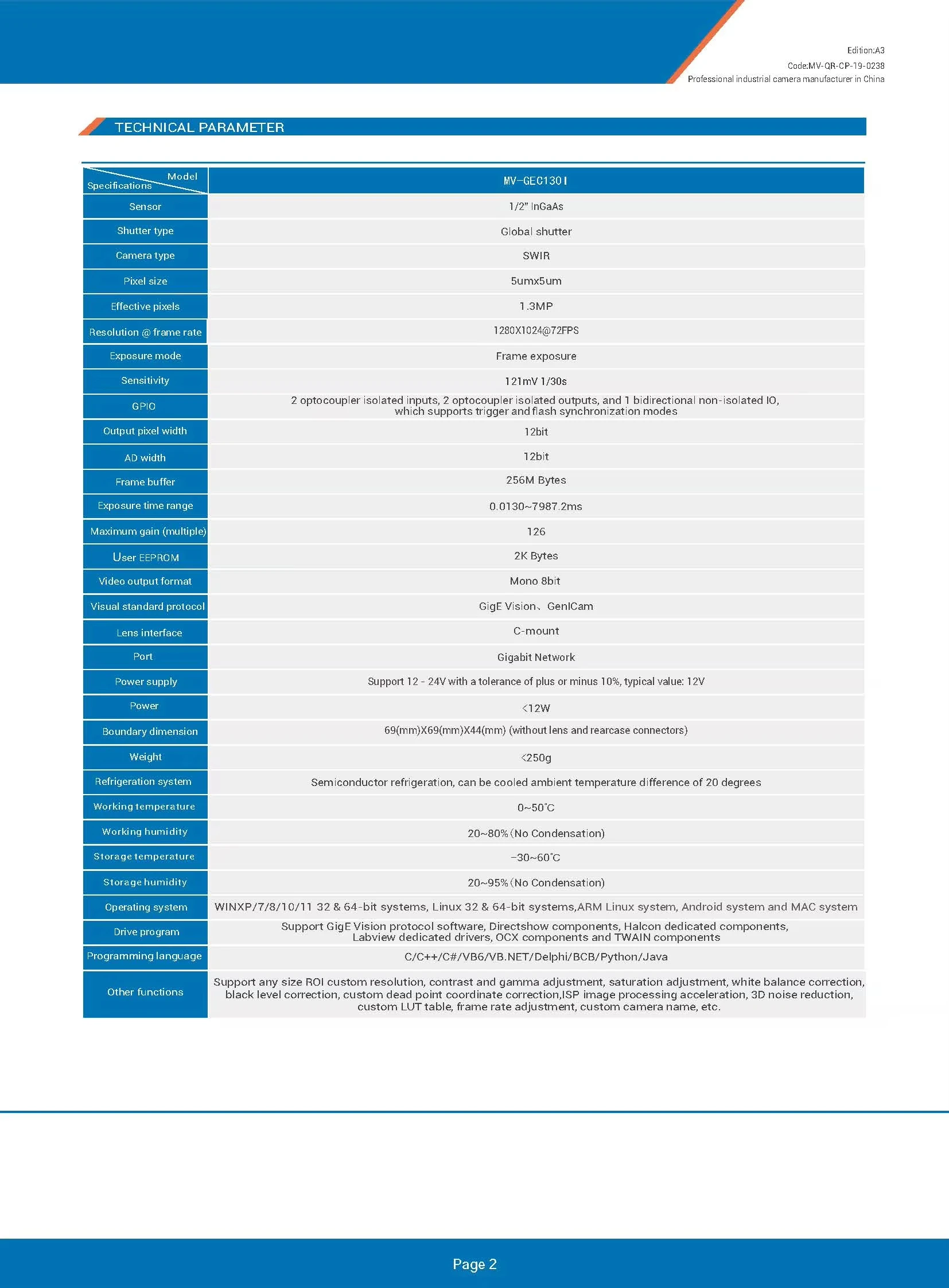 Comprar Cámara industrial Sony Sensor GigE Obturador global de 1,3 MP para automatización industrial Transporte inteligente e imágenes fluorescentes