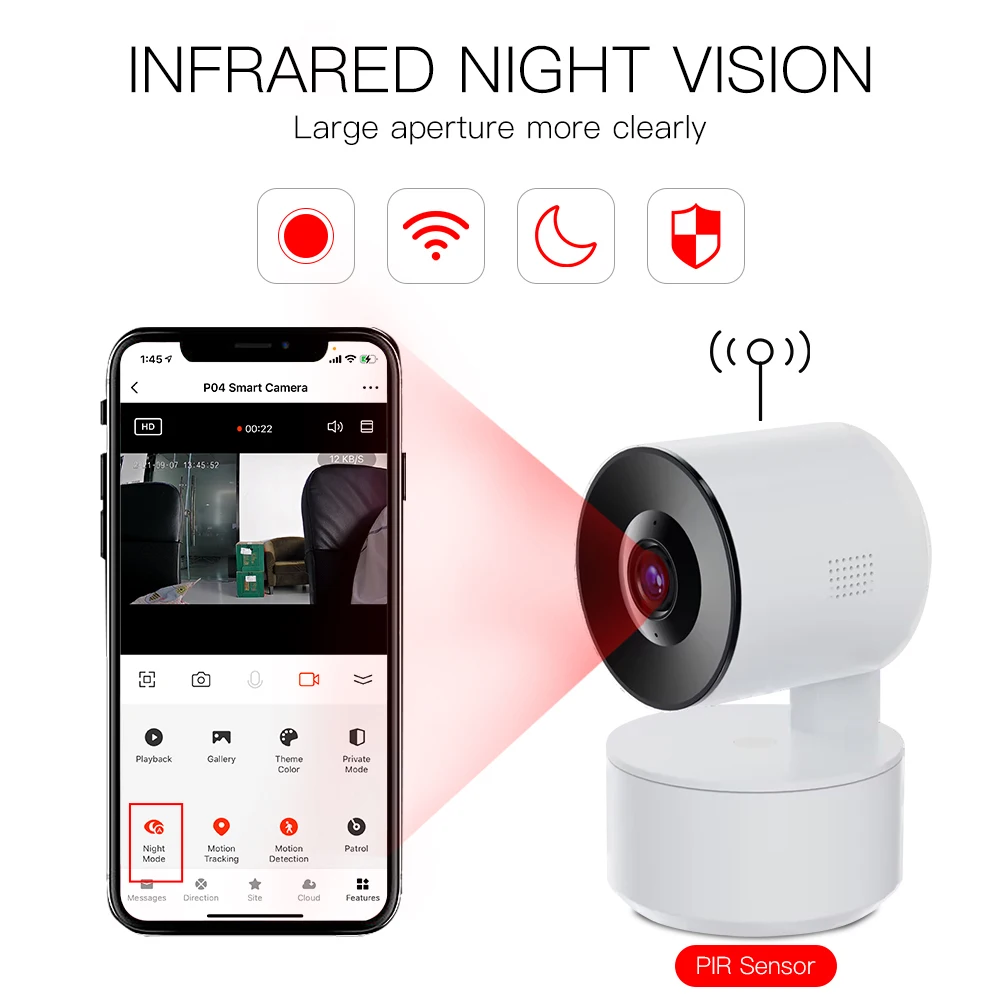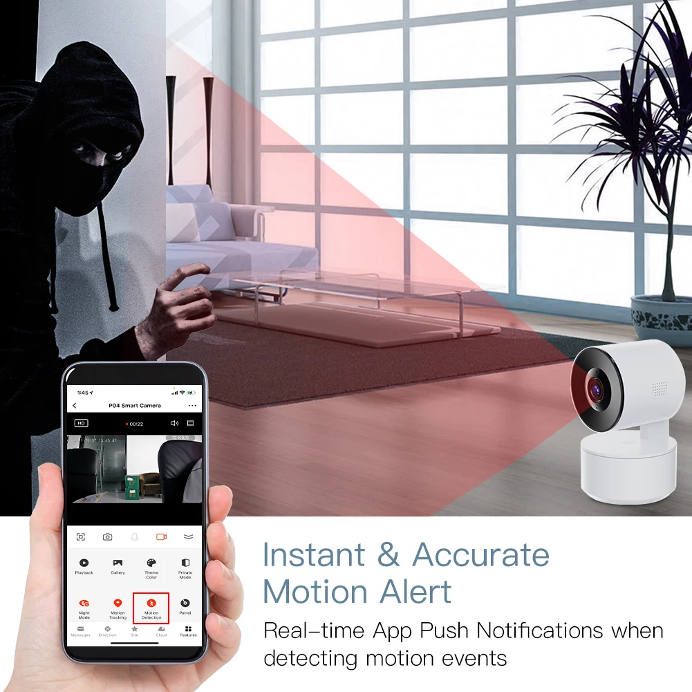 Cámara de seguridad inalámbrica WiFi Audio bidireccional Tuya cámara de vigilancia visión nocturna cámara de monitoreo remoto 1080P detección de movimiento seguimiento automático uso en interiores Característica: 1. Visión general clara y conveniente:La Cámara inteligente Graffiti proporciona una visión completa y clara de su hogar, y con la aplicación Graffiti Smart puede controlar fácilmente su casa desde cualquier lugar. Con una carga fácil, no tiene que preocuparse por el apagado de la batería. Disfruta de las funciones más inteligentes de la aplicación Graffiti Smart Life. 2. Conexión WiFi de 2,4 GHz:La cámara de vigilancia admite WiFi de 2,4 GHz, ofrece una prueba gratuita de un mes de almacenamiento y servicios en la nube, y si necesita ampliarla, puede activar el servicio de almacenamiento en la nube a través de la aplicación mediante el pago. Reciba notificaciones push instantáneas en su teléfono o en la aplicación Graffiti Smart cuando se active una alarma. Supervise su hogar de forma remota con su teléfono inteligente y disfrute de la vigilancia en tiempo real de su propiedad en alta definición (2MP), Cuidado de seguridad con poca luz y escenarios versátiles. 3. Seguimiento y detección de movimiento inteligente:La Cámara IP puede detectar incluso el más mínimo movimiento en su puerta. La cámara de seguridad inalámbrica transmitirá inmediatamente una notificación a su teléfono cuando visitantes o extraños pasen por su casa, con un amplio rango de transmisión; mire a su alrededor, proteja sus ojos, ángulo de visión de 360 grados, y plataforma de nube dual. 4. Audio bidireccional y almacenamiento en la nube:La cámara de monitoreo remoto se comunica con los visitantes a través de Audio bidireccional, elimina el ruido y disfruta de una comunicación fluida. Opciones de almacenamiento más confiables, tarjeta SD simultánea y almacenamiento en la nube. 5. Visión nocturna:La Función de visión nocturna infrarroja de la Cámara inteligente protege su hogar día y noche. Garantice la seguridad de su hogar en la oscuridad con disparos de alta definición y 10 metros de capacidad de visión nocturna infrarroja.