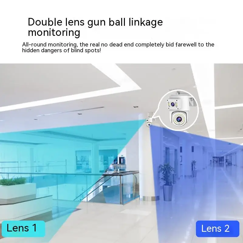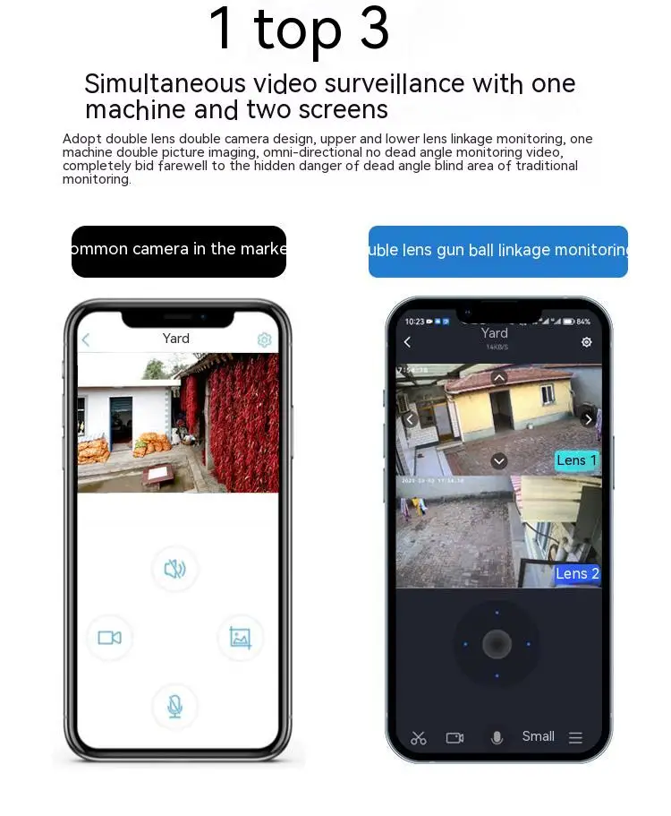 2. Pantalla dual de sensor dual de tres lentes, ultra gran angular + zoom de 10x para lograr un monitoreo claro desde lejos y cerca;