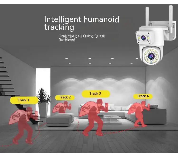 9. Seguimiento automático/alarma de movimiento, sonido de salida de alarma y conexión de luz;
