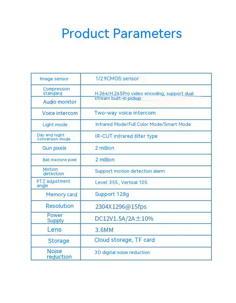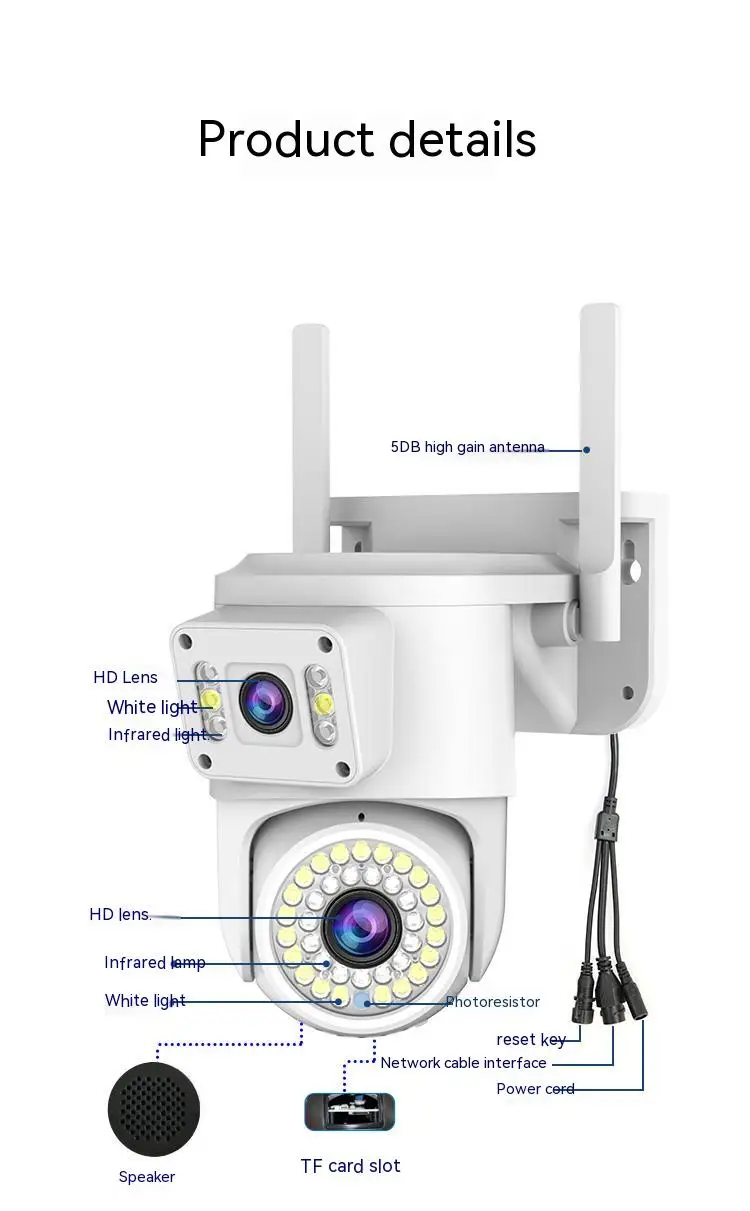 3. Diseño de doble fuente de luz, luz infrarroja incorporada + luz blanca, se puede configurar la visión nocturna infrarroja y la visión nocturna a todo color;