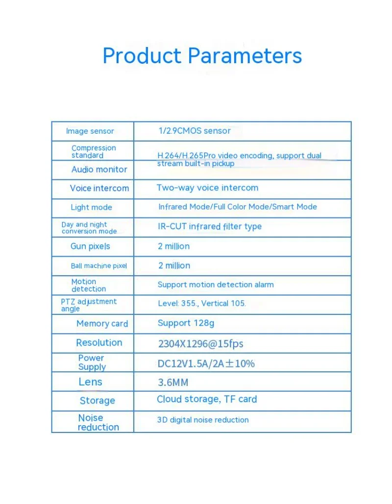 3. Diseño de doble fuente de luz, luz infrarroja incorporada + luz blanca, se puede configurar la visión nocturna infrarroja y la visión nocturna a todo color;