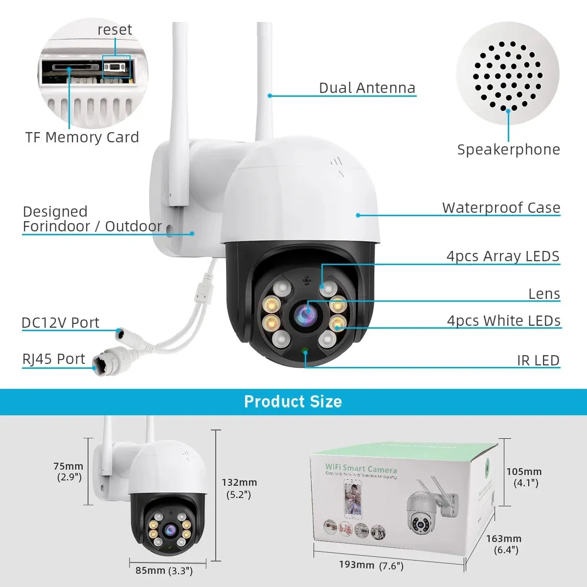 Comprar Cámara IP 4K 8MP PTZ Wifi para exteriores Zoom Digital 4X AI cámara inalámbrica de detección humana H.265 P2P Audio 1080P 5MP cámara CCTV de seguridad