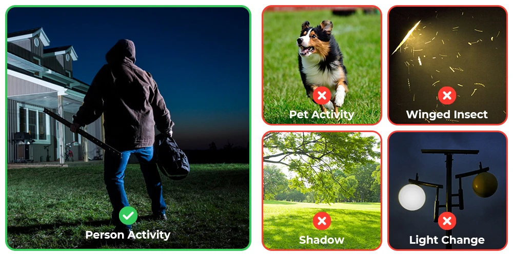 AI Human Detection es diferente de PIR tradicional o detección de movimiento. El sensor actualizado incorporado solo detectará el movimiento humano, no se activará por hojas, animales o insectos.