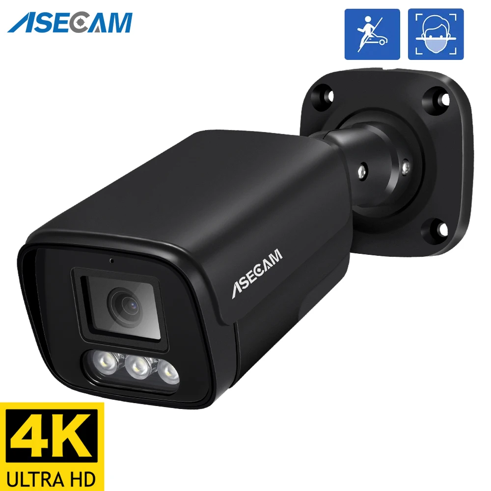 Comprar Cámara IP de 8MP y 4K para exteriores, videocámara de seguridad con reconocimiento facial, IA, H.265, Onvif, CCTV, RTSP, Color negro, visión nocturna, 4MP, POE, Audio humano