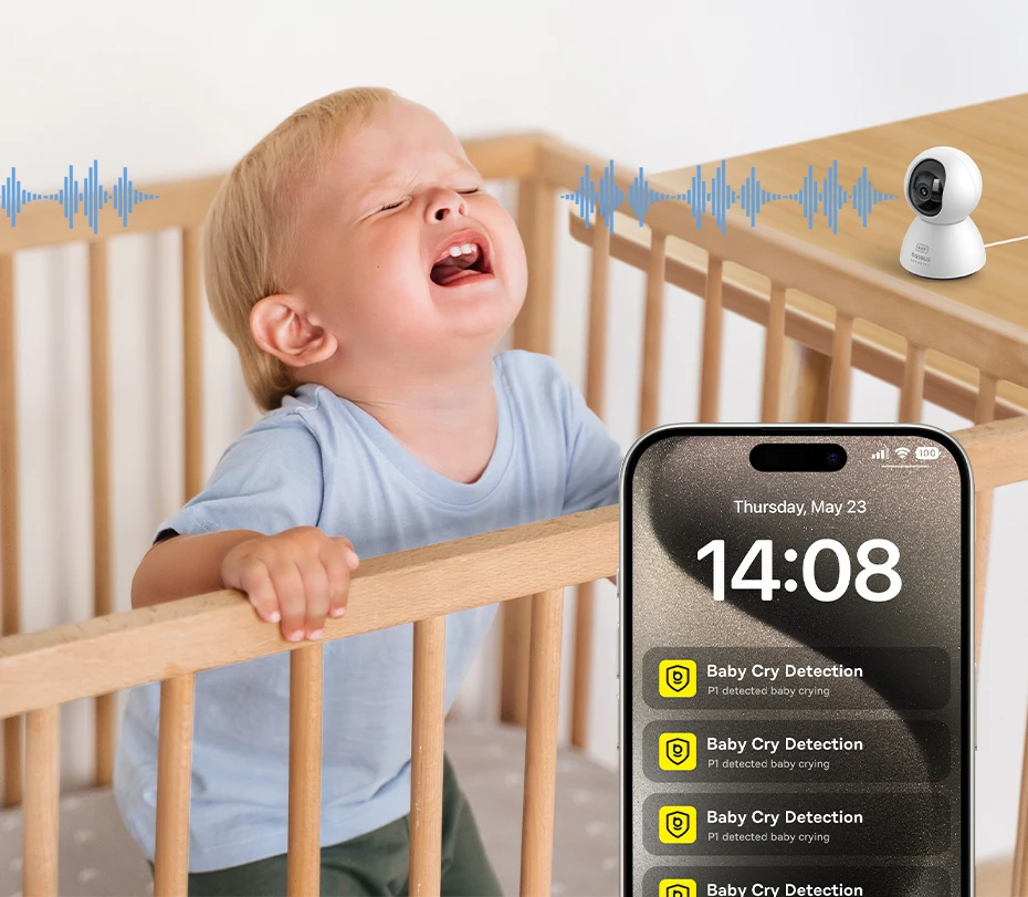 Experimente la tranquilidad con la función de detección de llanto para bebés de nuestra cámara, lo que garantiza que reciba una alerta instantánea sobre las necesidades de su bebé, incluso cuando no esté en la habitación.
